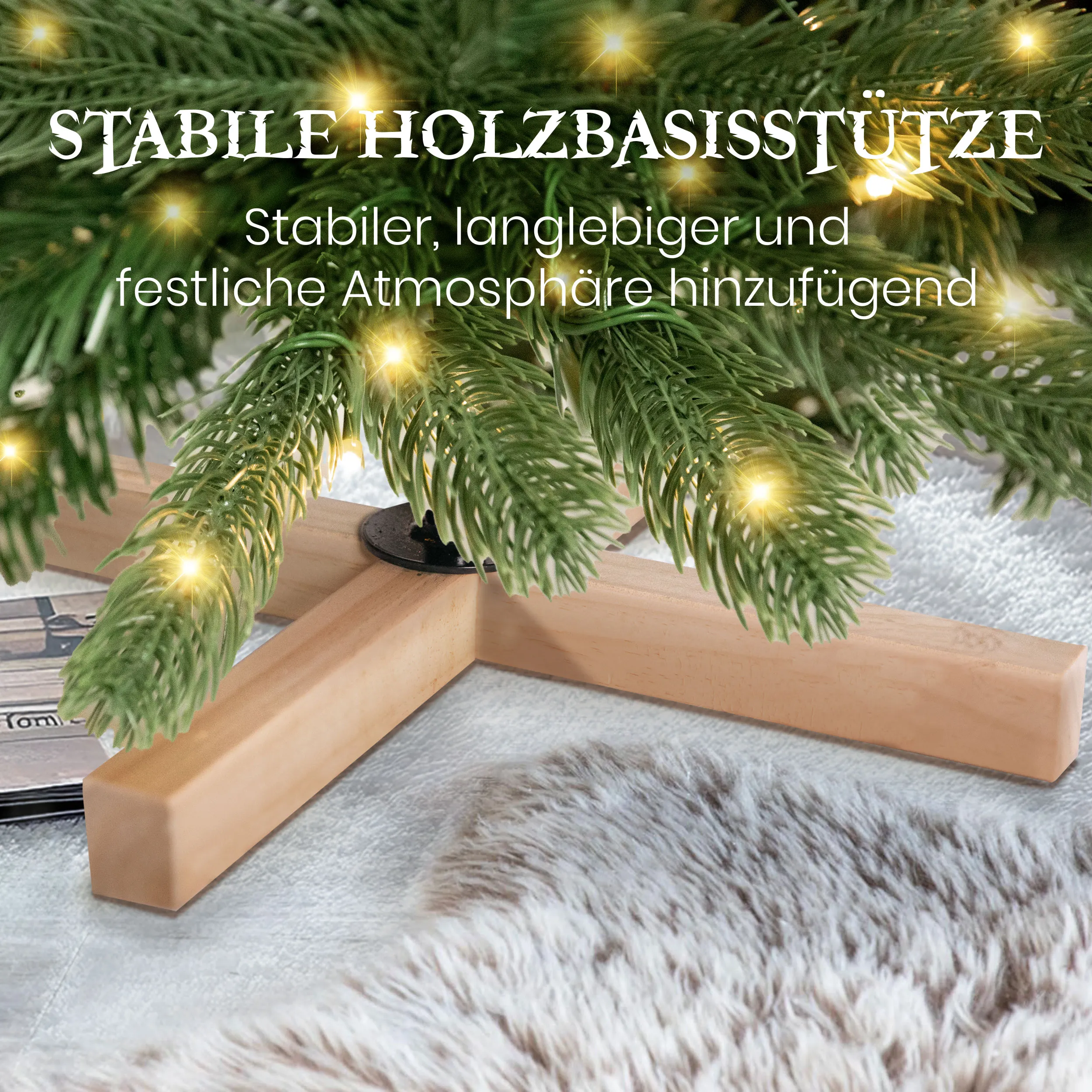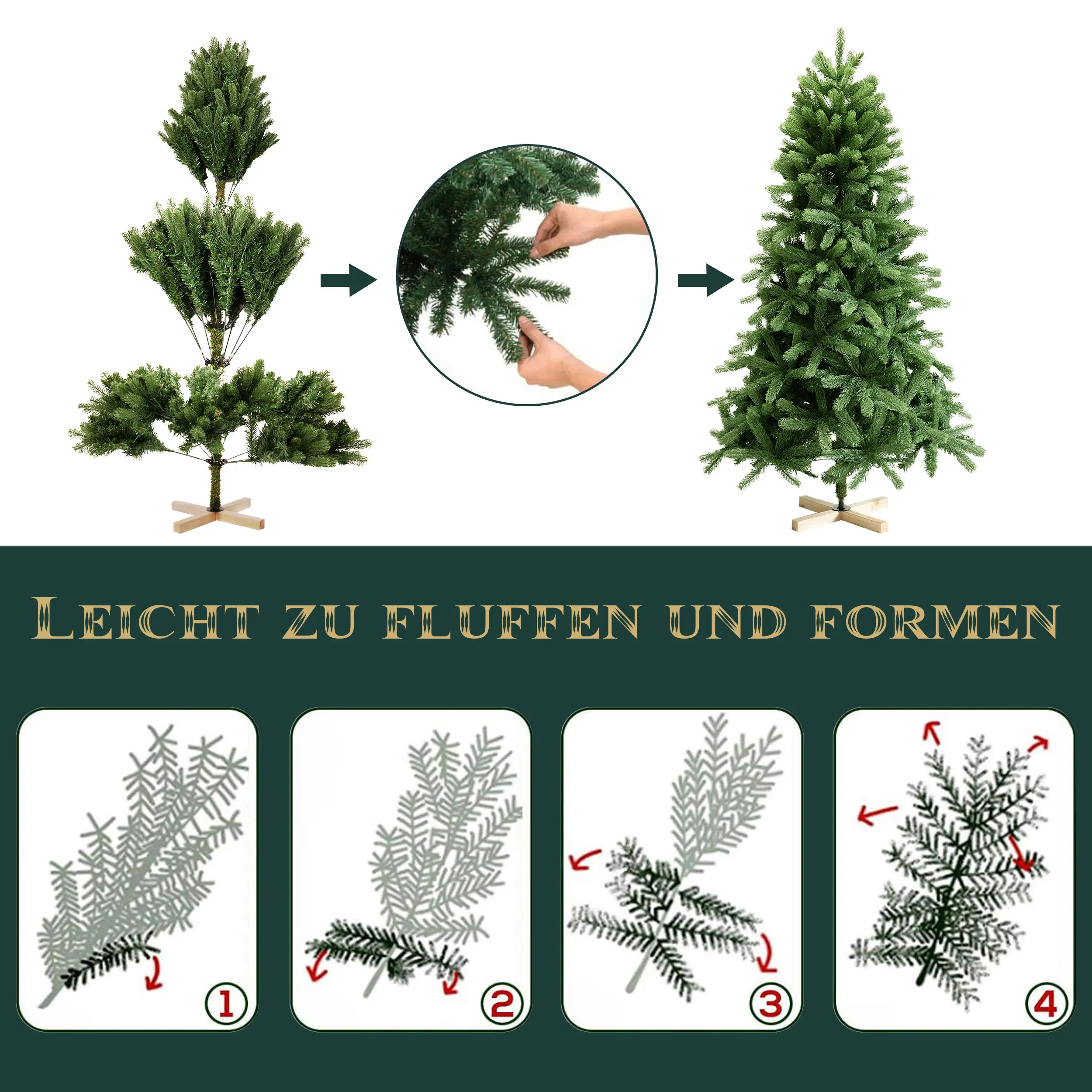 Arbre de Noël Artificiel avec Lumières LED – 180/210/235 cm, PVC & PE, Pied en Bois
