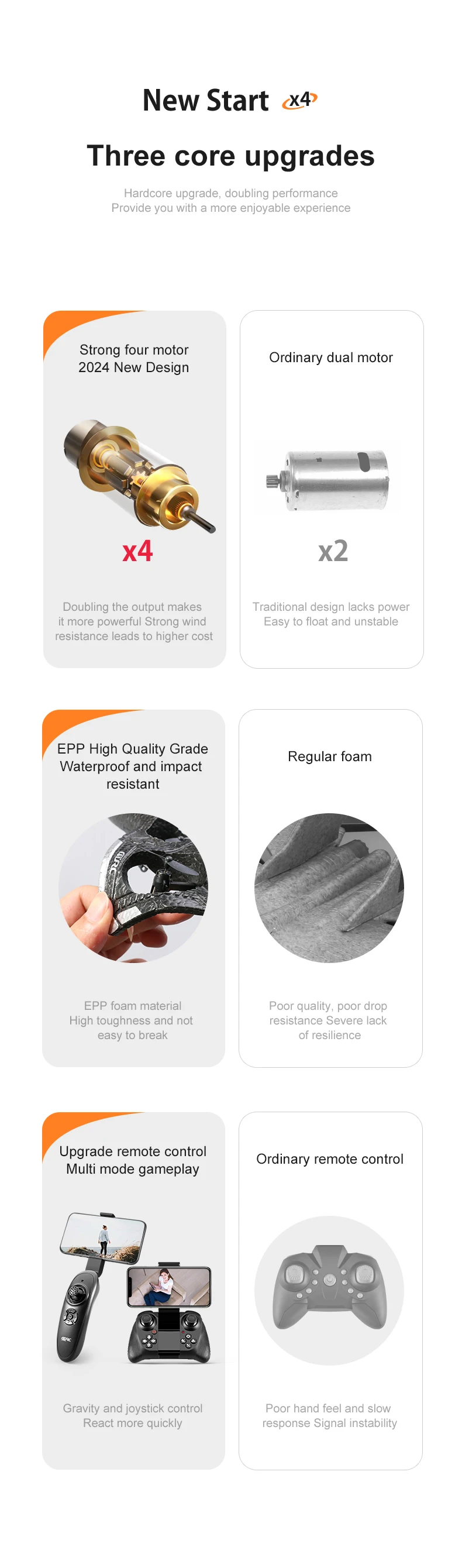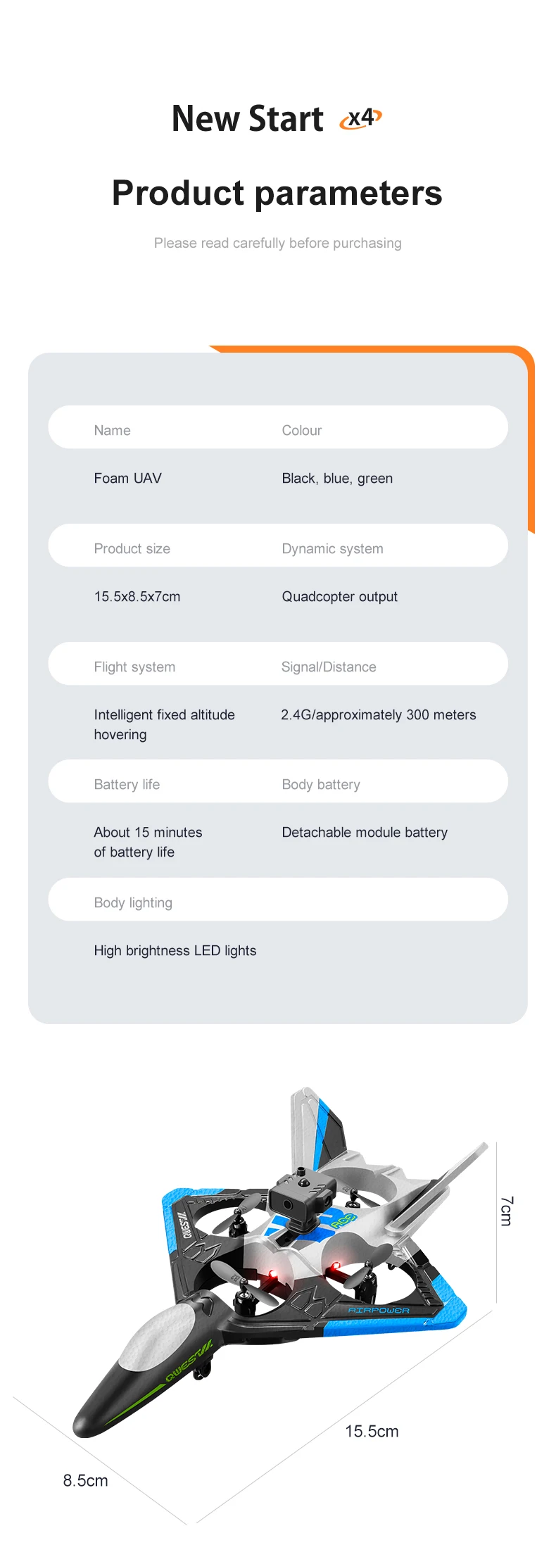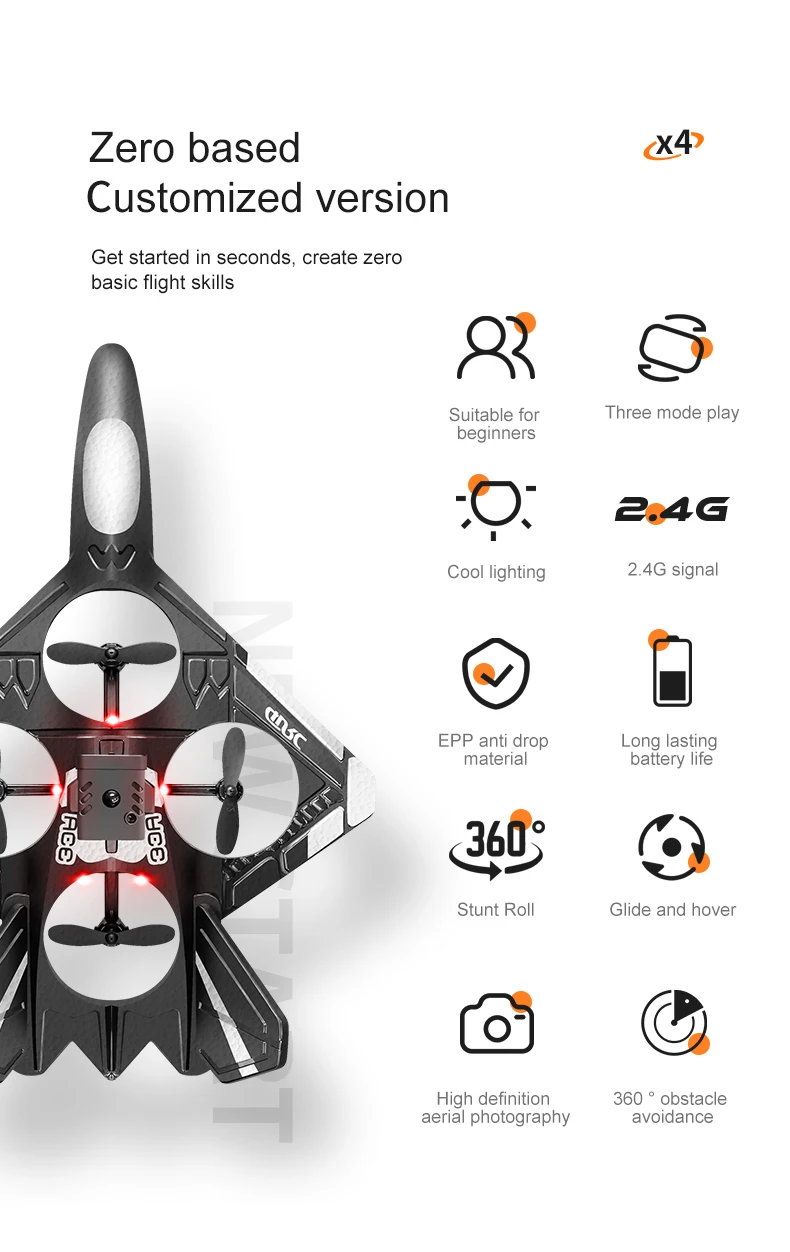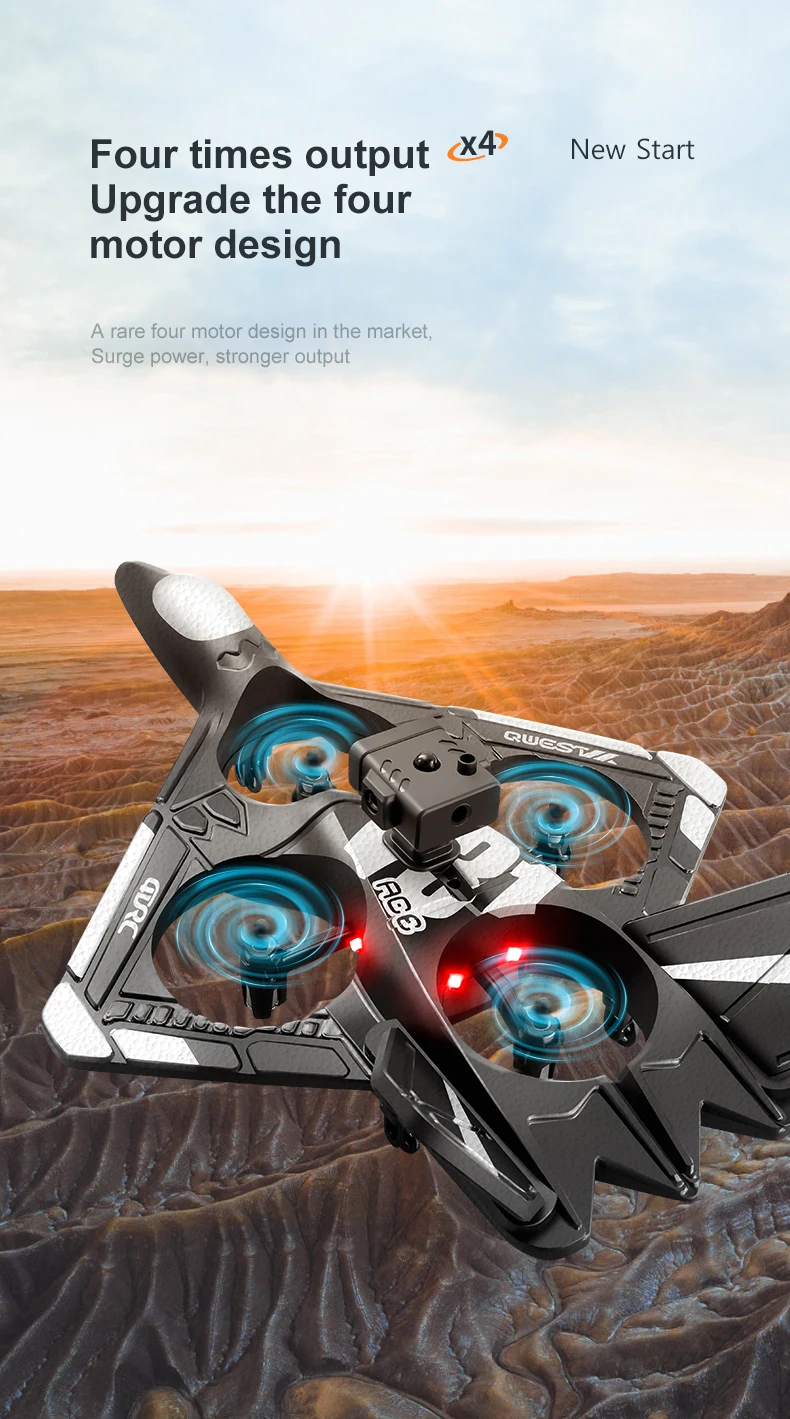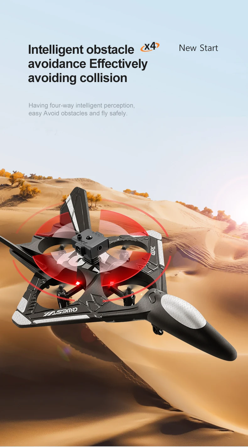 Produit dernière version avec trois nouvelles fonctionnalités : Évitement d’obstacles radar, capteur G pour direction intuitive, ajout de la caméra à l’avion avec options d’achat.