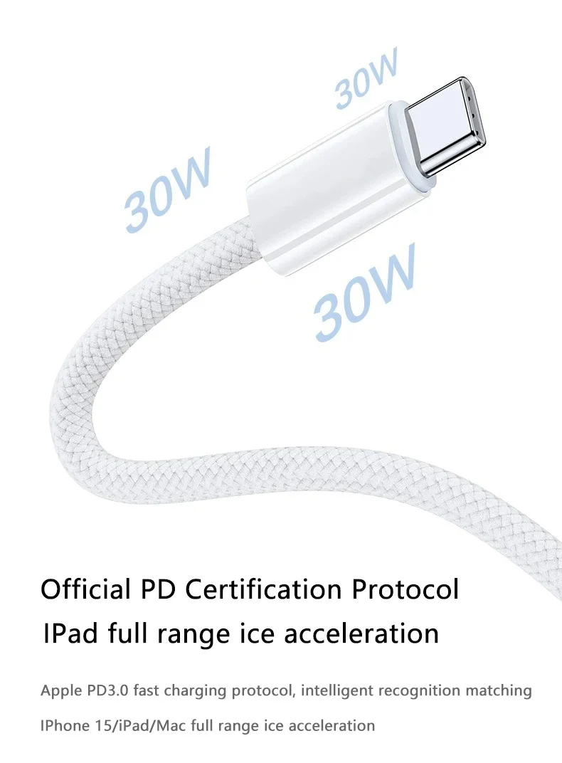 Câble de charge rapide USB-C vers USB-C PD 60W – tressé – compatible iPhone 15, 15 Pro, 15 Pro Max