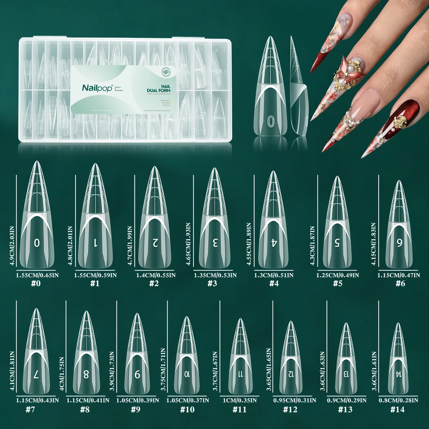 Moules d’Extension Réutilisables avec Ligne French 3D Intelligente - Nailpop Formes Doubles French Space Stiletto 150 pièces