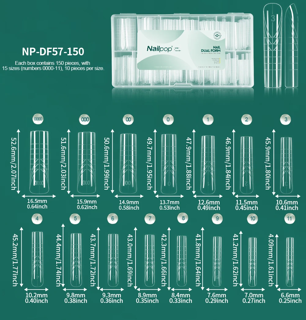 Formes doubles rectangulaires pour ongles, 150 pièces