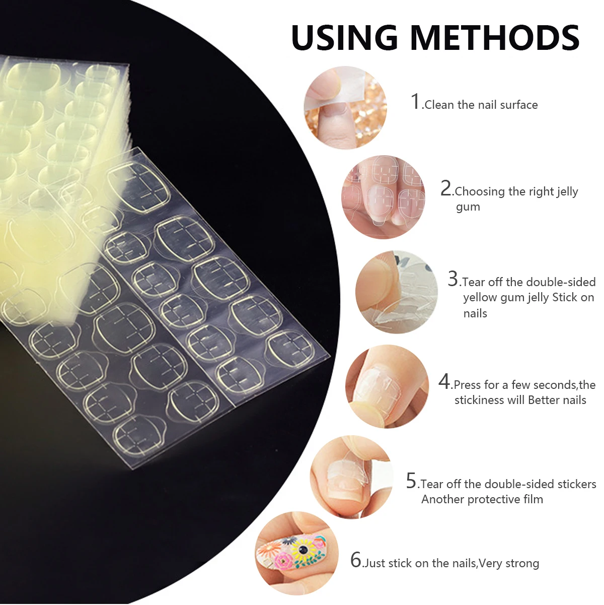 Application facile : Auto-adhésif pour fixer rapidement faux ongles ou capsules