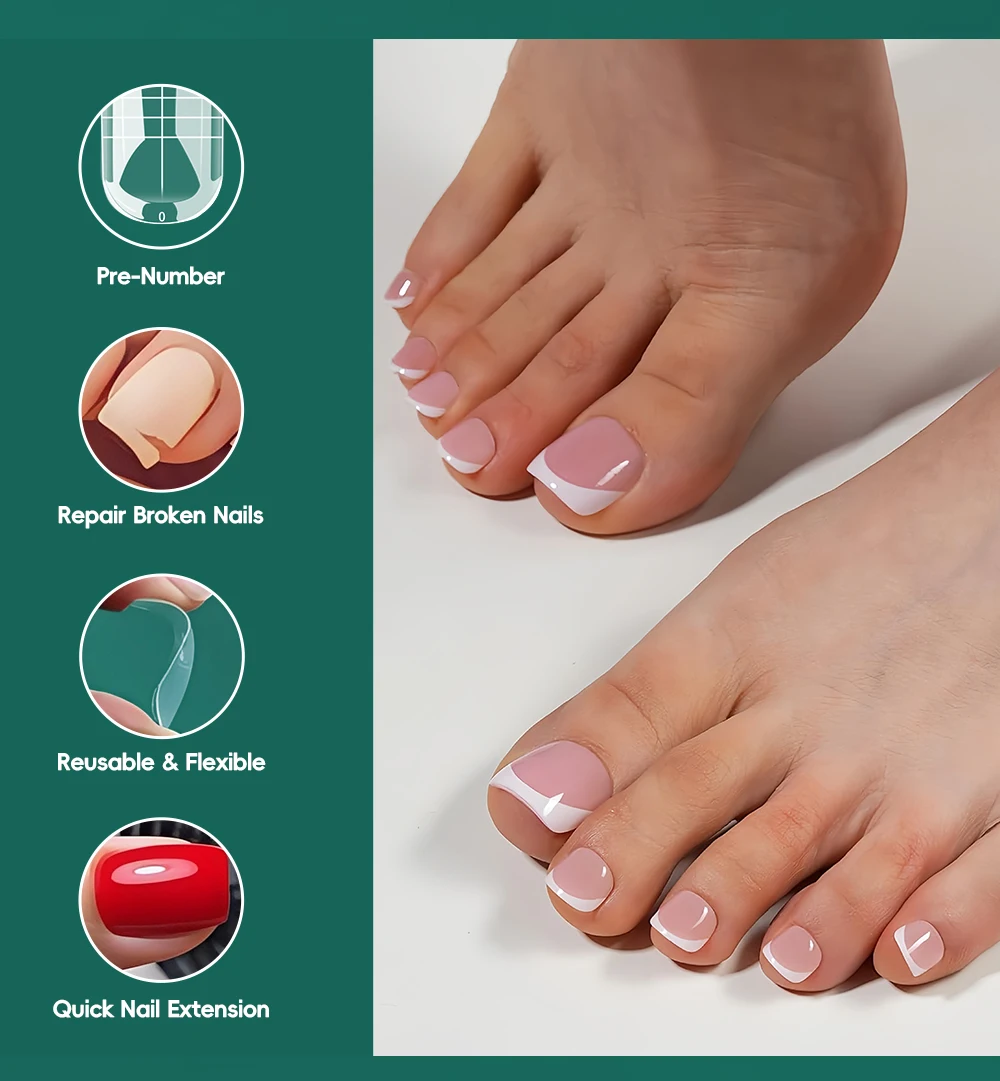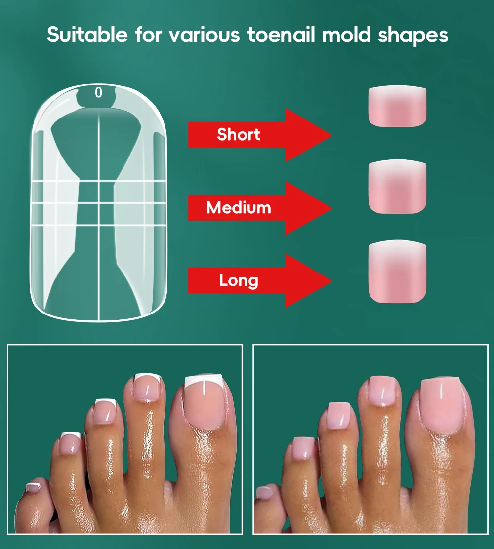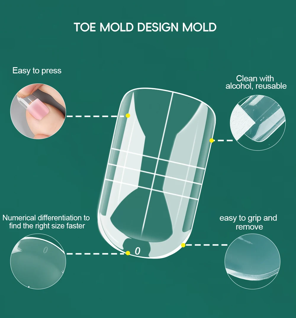 Créez des extensions d’ongles d’orteil parfaites à la maison ou en salon avec ces moules doubles réutilisables. Conçus pour un ajustement précis et confortable, idéaux pour débutants et professionnels.