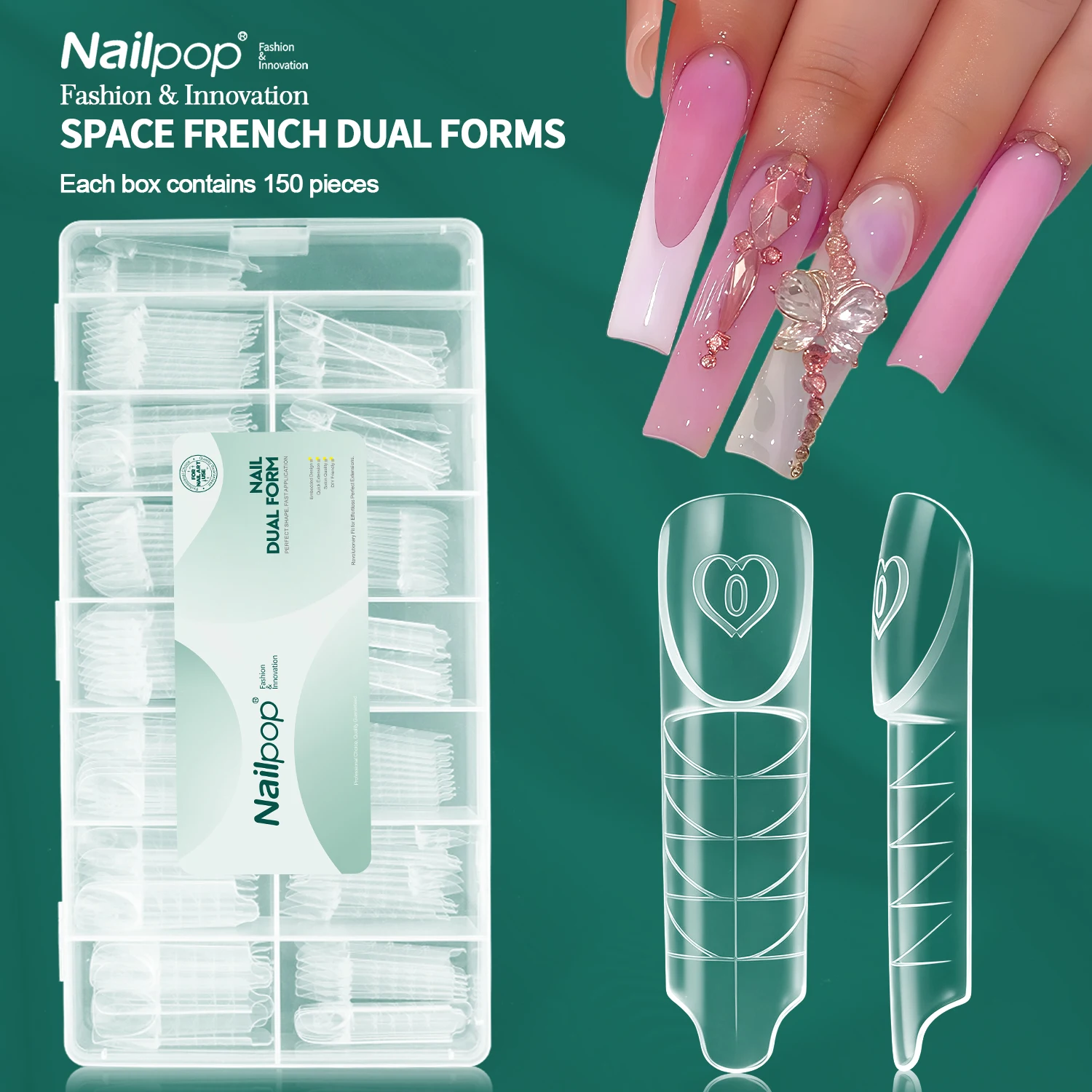 Moules à Ongles Réutilisables pour Nail Art - Nailpop Space French Dual Forms – 15 Tailles, Gel et Extensions, 30/60/75/150 pièces