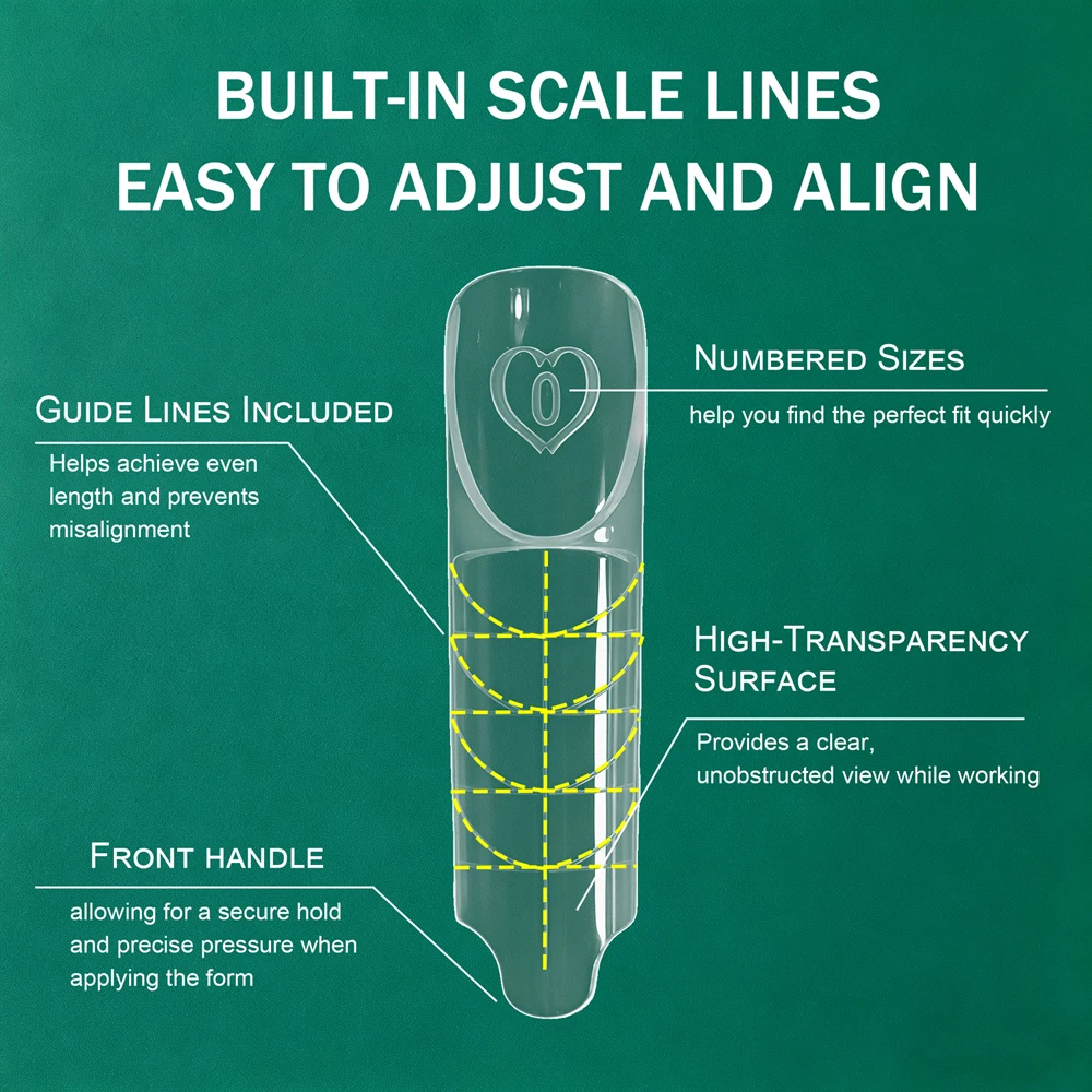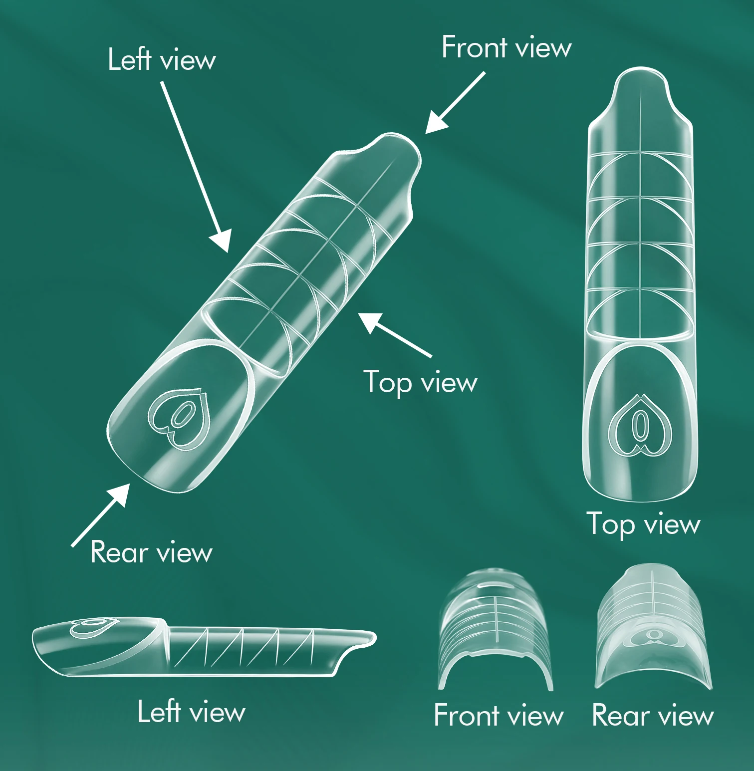 Des formes dual system transparentes conçues pour réaliser facilement des extensions et des french nettes. Grâce aux lignes de guidage et aux multiples tailles, elles offrent précision, rapidité et résultat professionnel.