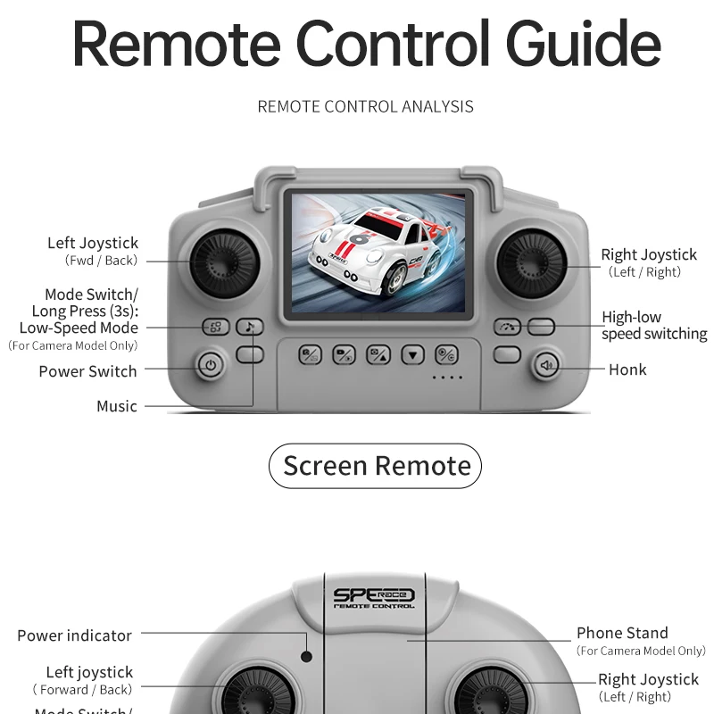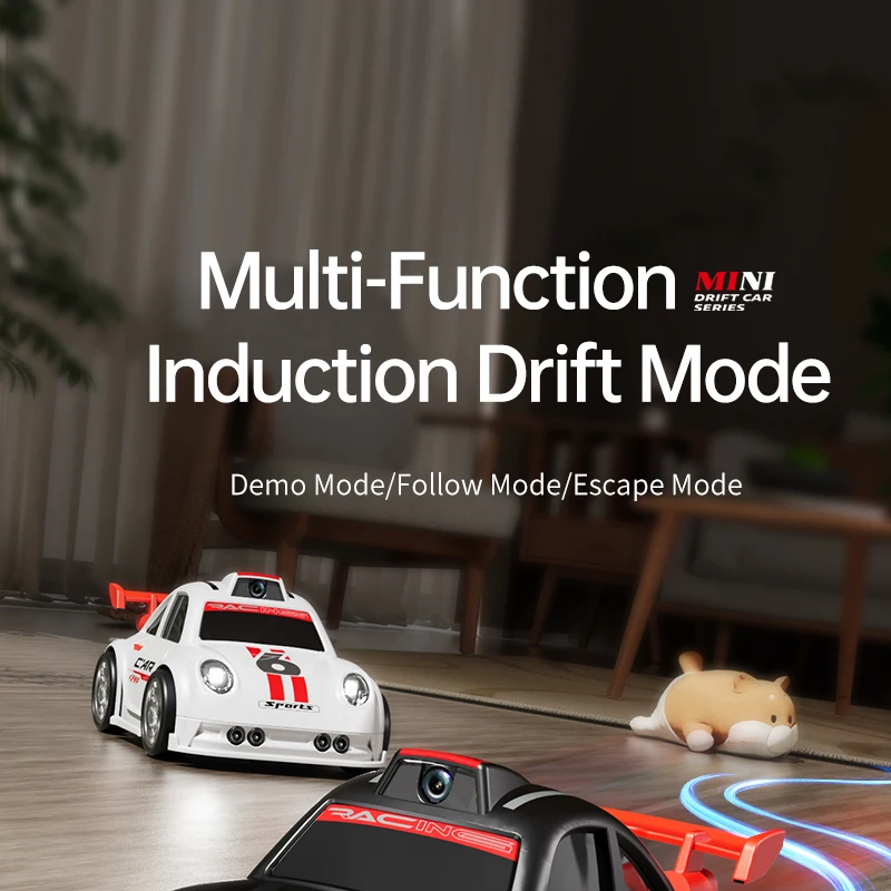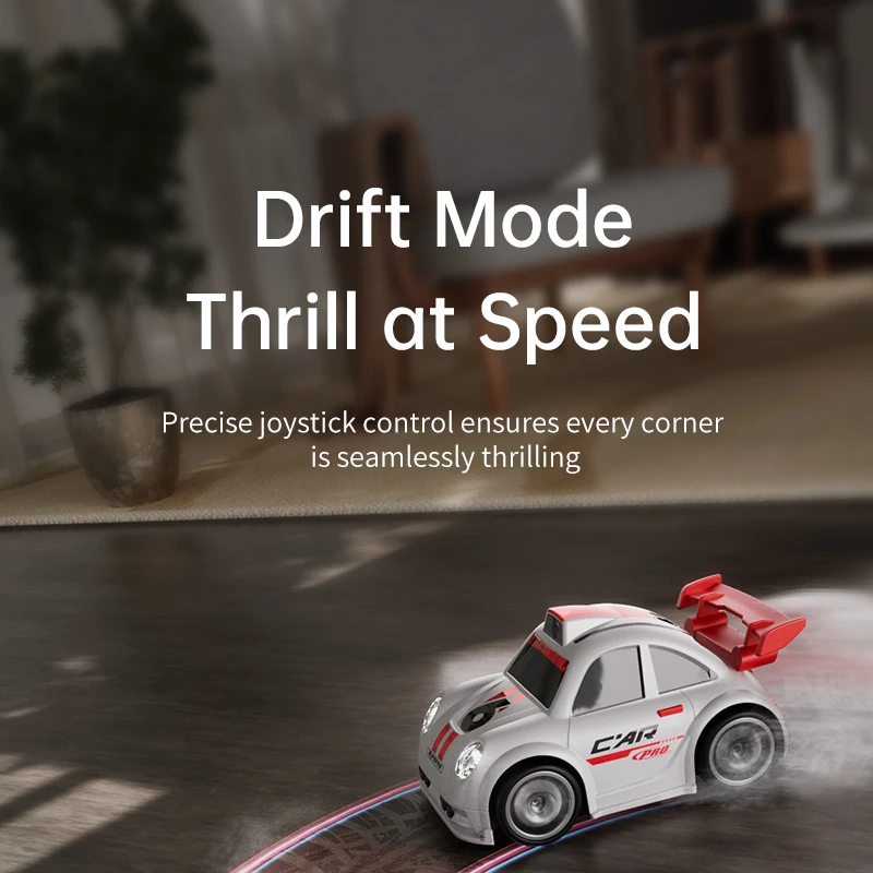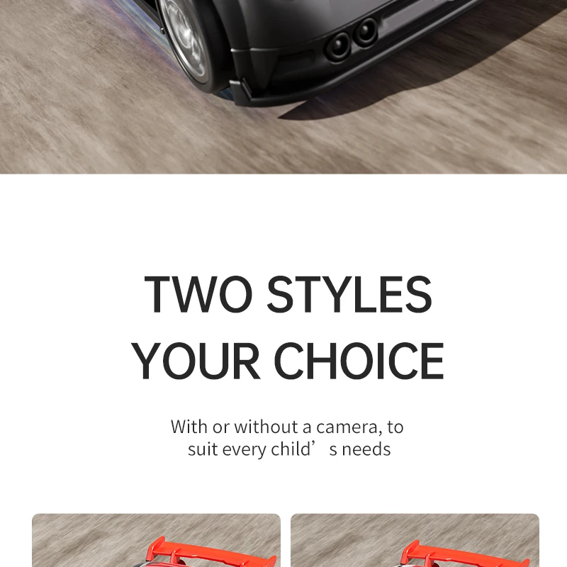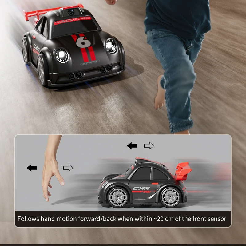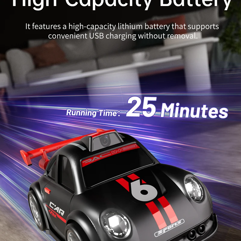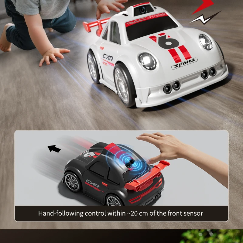Mini voiture RC pour enfants avec caméra FPV, transmission Wifi, écran intégré et fonctions avancées comme le mode de suivi et la dérive. Parfaite pour les courses et le divertissement interactif.
