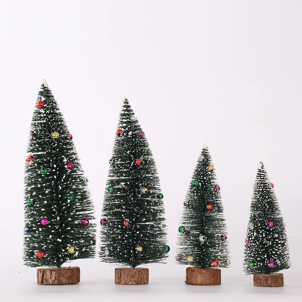 Mini arbre de noël en perles collantes floquées, ornements de bureau de noël, petit arbre de noël