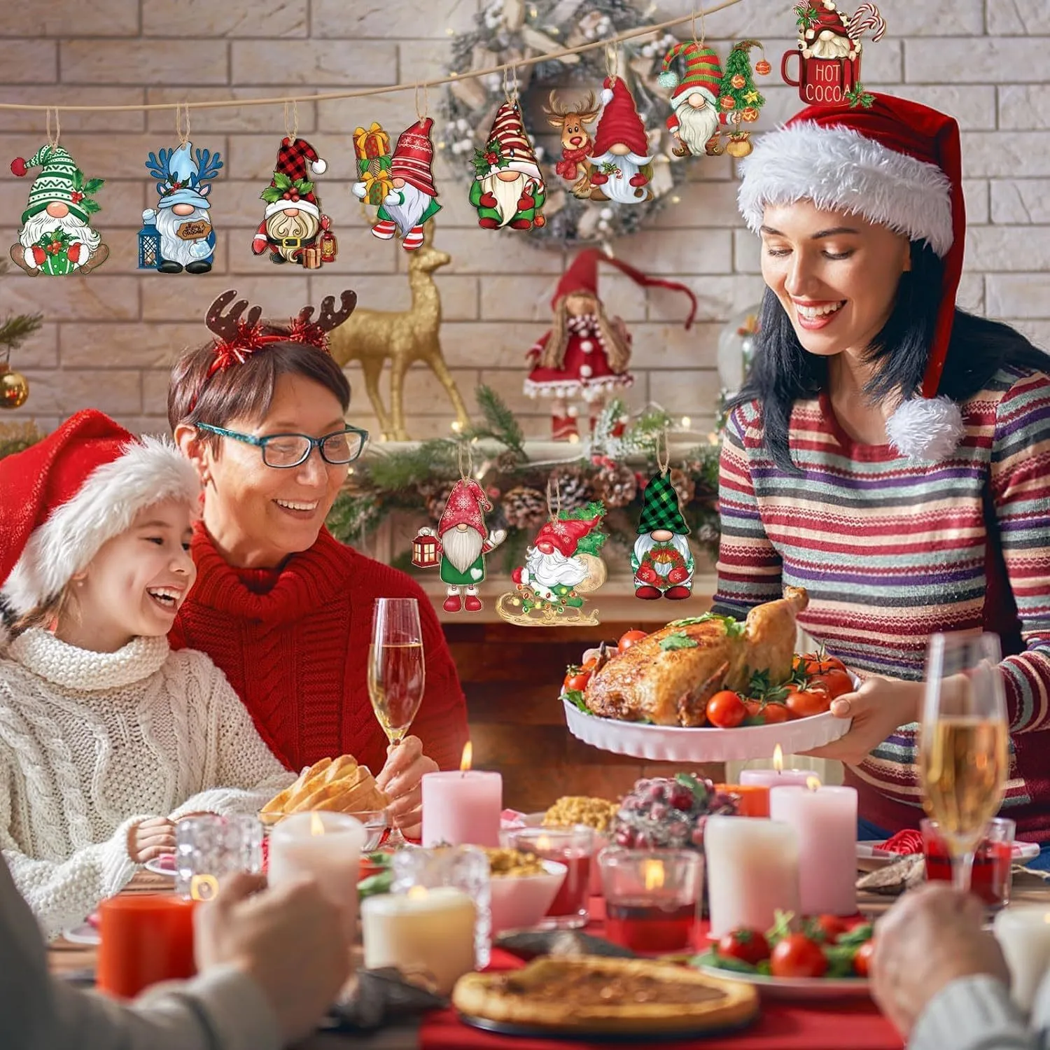 Pendentifs Gnome de Noël en bois, lot de 12, décorations suspendues pour arbre de Noël