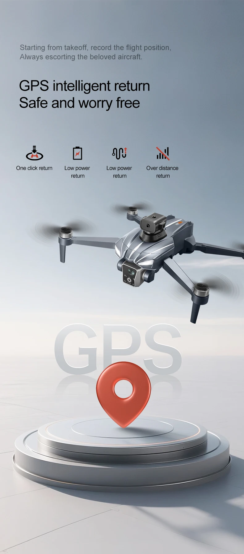 Retour GPS à une clé, retour automatique sur batterie faible ou perte de signal
