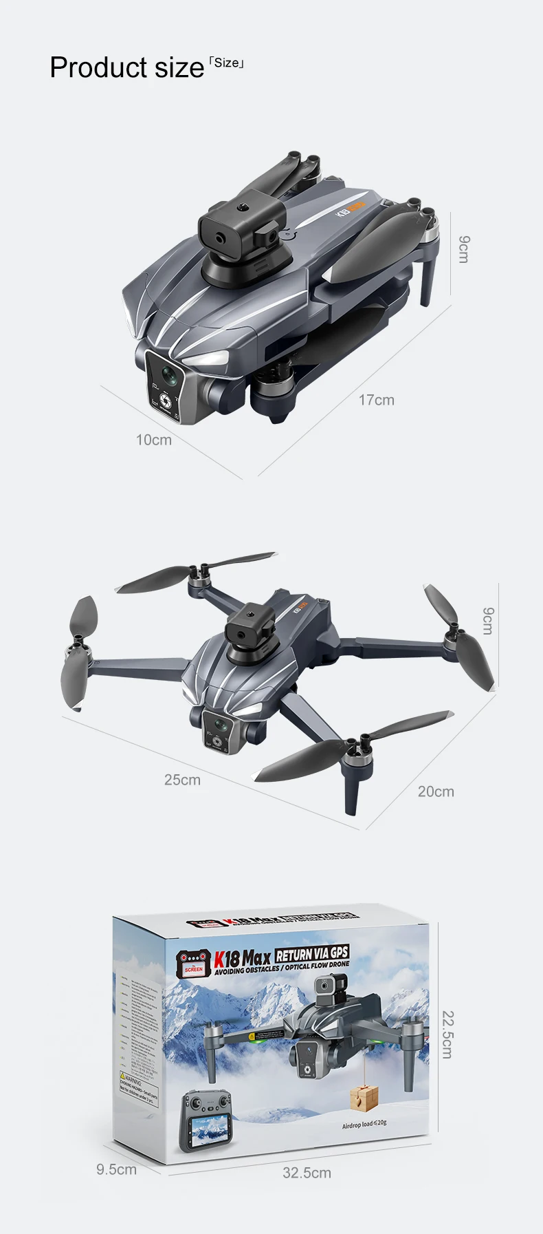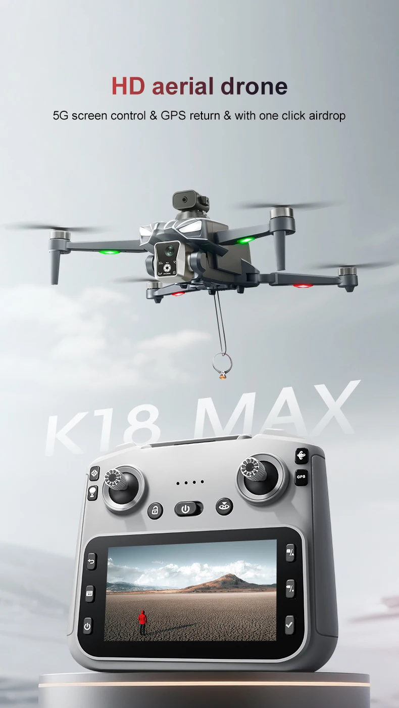 Le K18MAX est un drone RC avancé avec GPS, moteur sans balais, double positionnement (GPS + flux optique) et caméra HD 8K. Il dispose d’un écran de contrôle intégré, d’un système d’évitement d’obstacles à 360° et de fonctions de largage aérien, idéal pour les amateurs de photographie aérienne et les pilotes débutants ou expérimentés.
