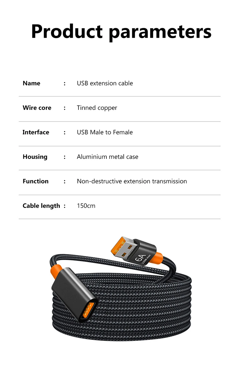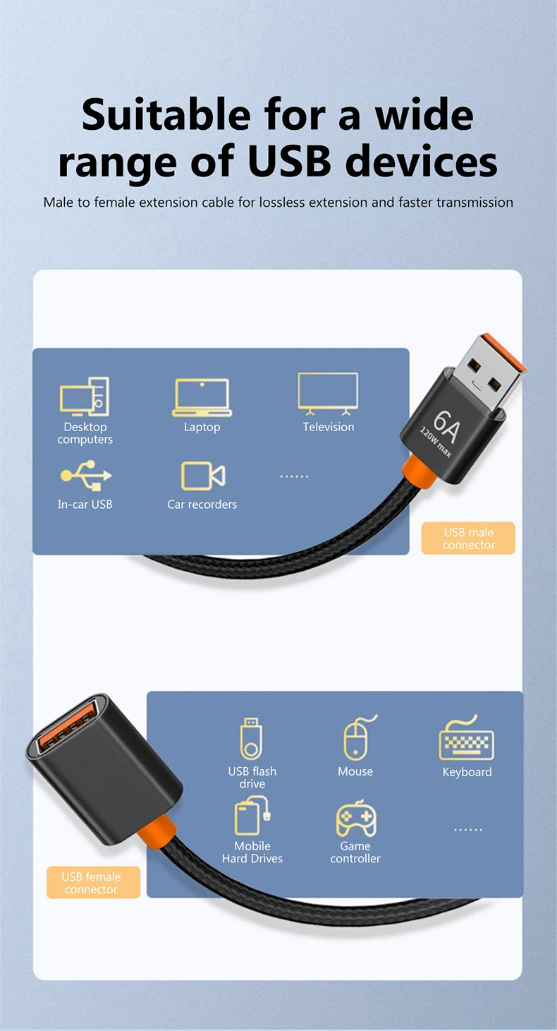Câble d'extension USB 3.0/2.0 6A, câble d'extension mâle à femelle, vitesse rapide USB 3.0/2.0 étendu pour ordinateur portable, Extension USB 3.0