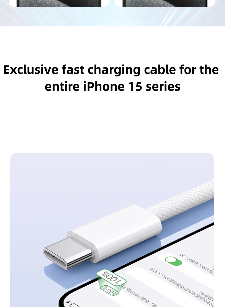 Câble USB-C d’origine pour iPhone 17 / 16 Pro Max PD 60W, charge rapide pour Huawei, Xiaomi, Samsung, Type-C