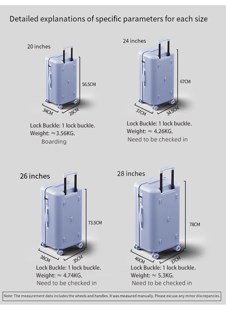 Valise SUSHIMU – Grande capacité avec poignée épaissie, cadre en plastique, verrouillage mot de passe, 20 à 28 pouces