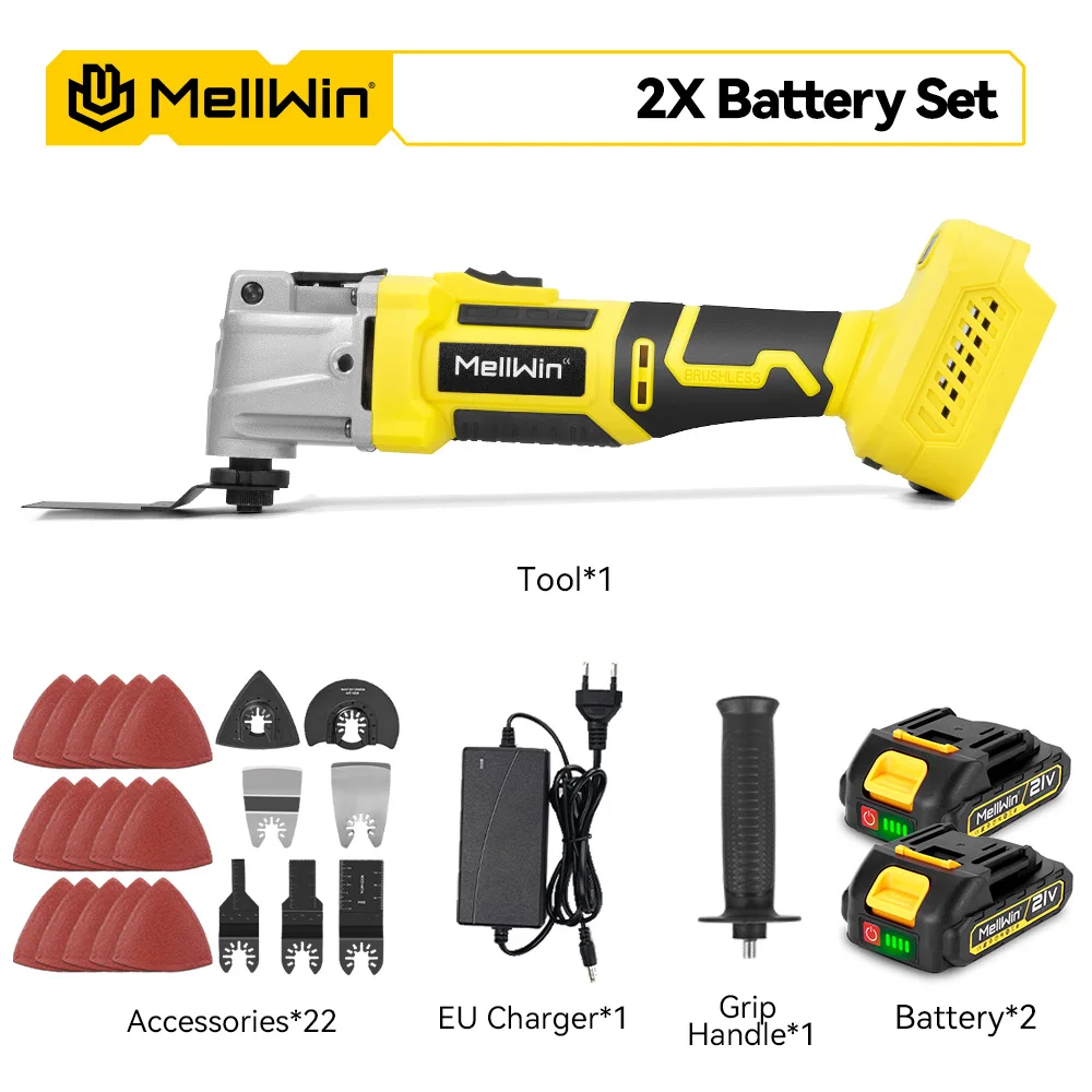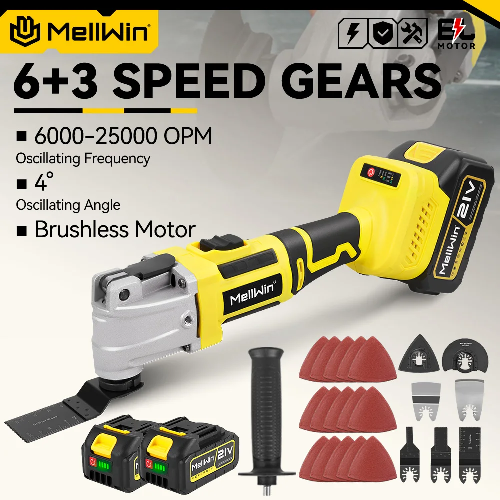 Outil multifonction oscillant sans balais MELLWIN – scie électrique, polisseuse et découpeur pour bois, compatible batterie Makita 18 V / 21 V