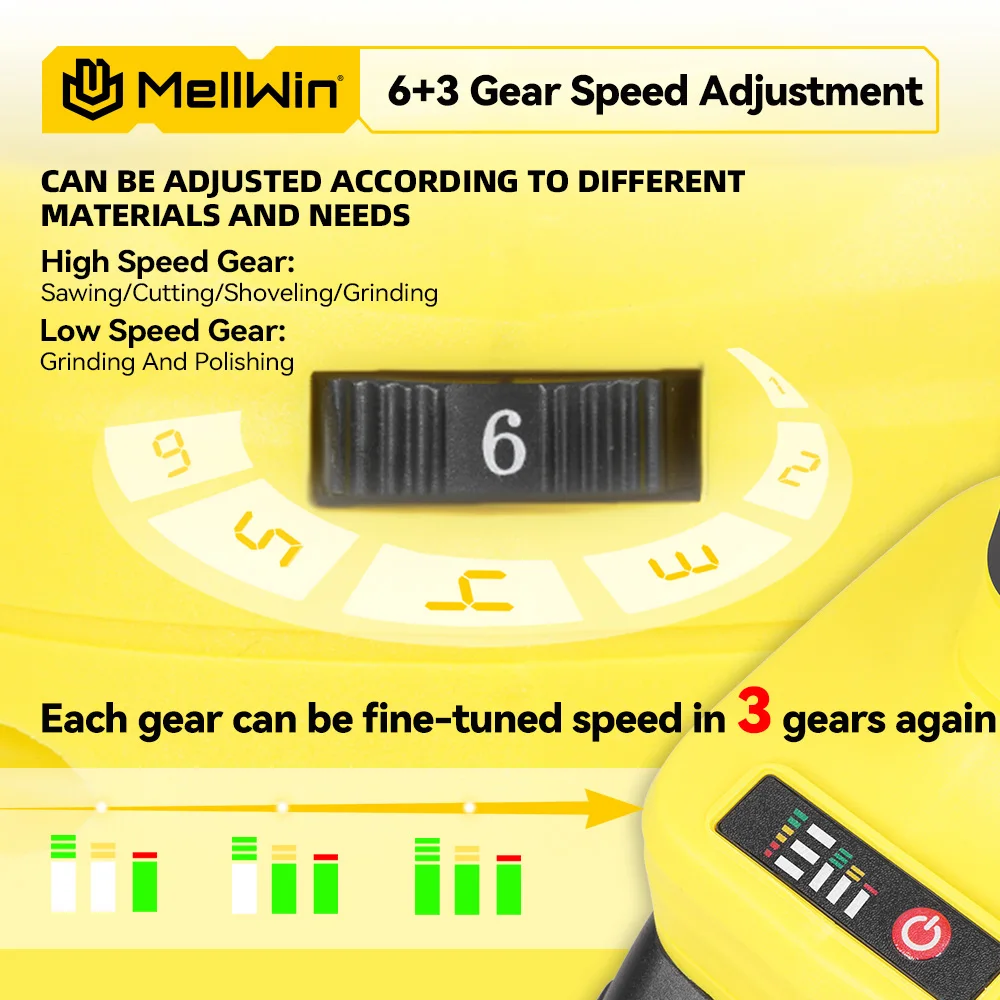 Réglage de vitesse 6+3 pour s’adapter à différents matériaux et besoins