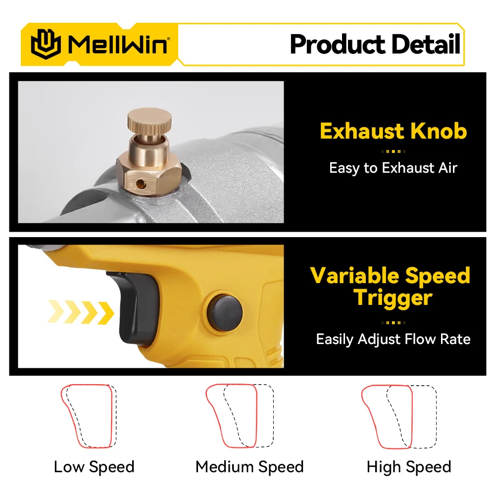 Pistolet à Graisse Électrique Sans Fil 12000PSI MELLWIN – Huile Lubrifiante Haute Pression pour Voiture, Compatible Makita 18V