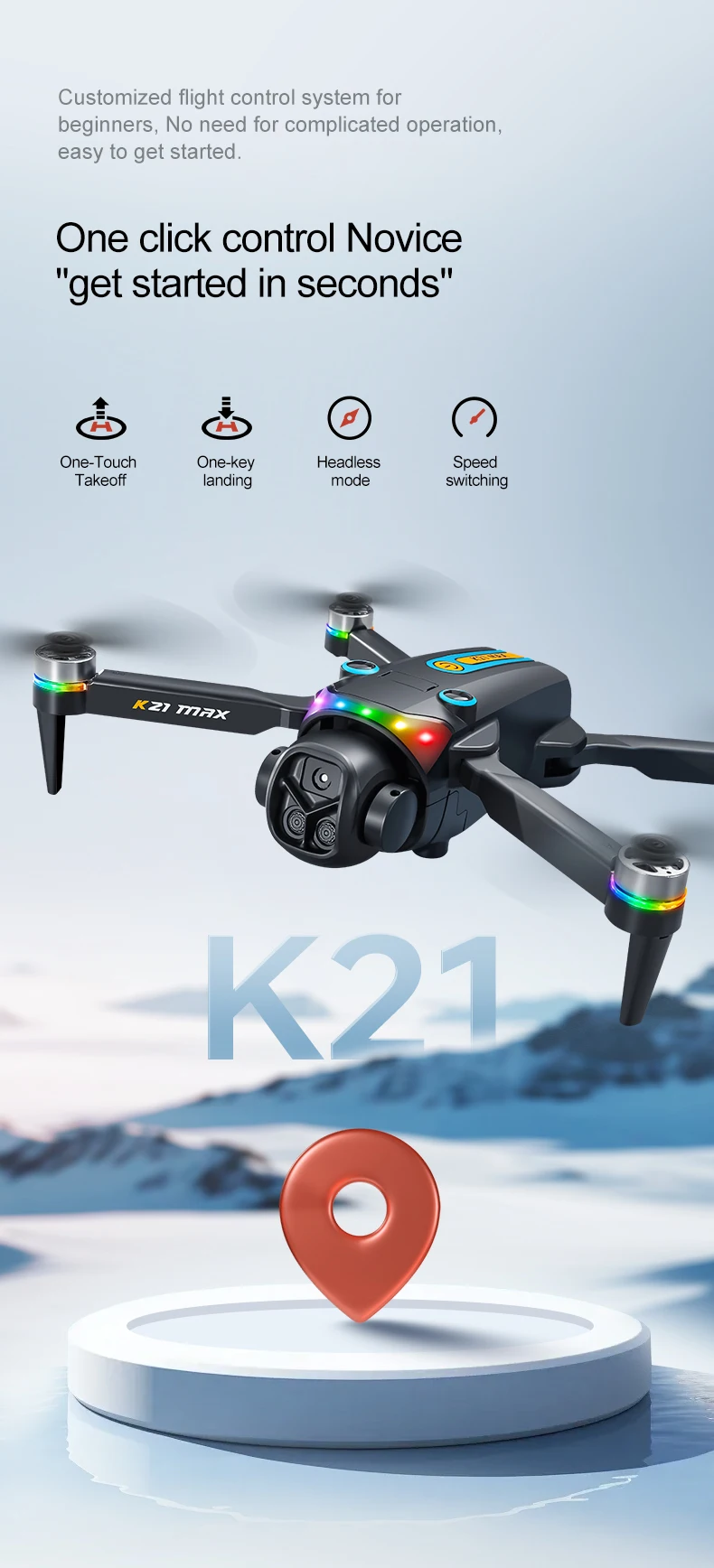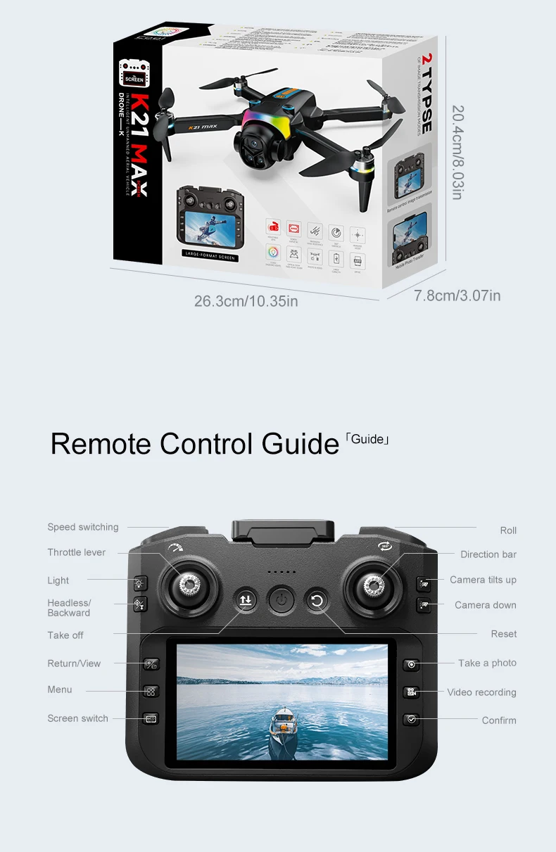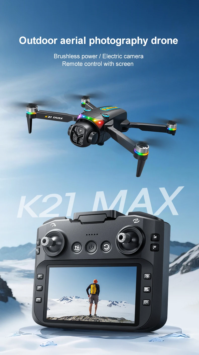 Drone 8K 2026 K21 – Caméra HD, Écran, Télécommande, Flip Drone Pliable Quadcopter RC