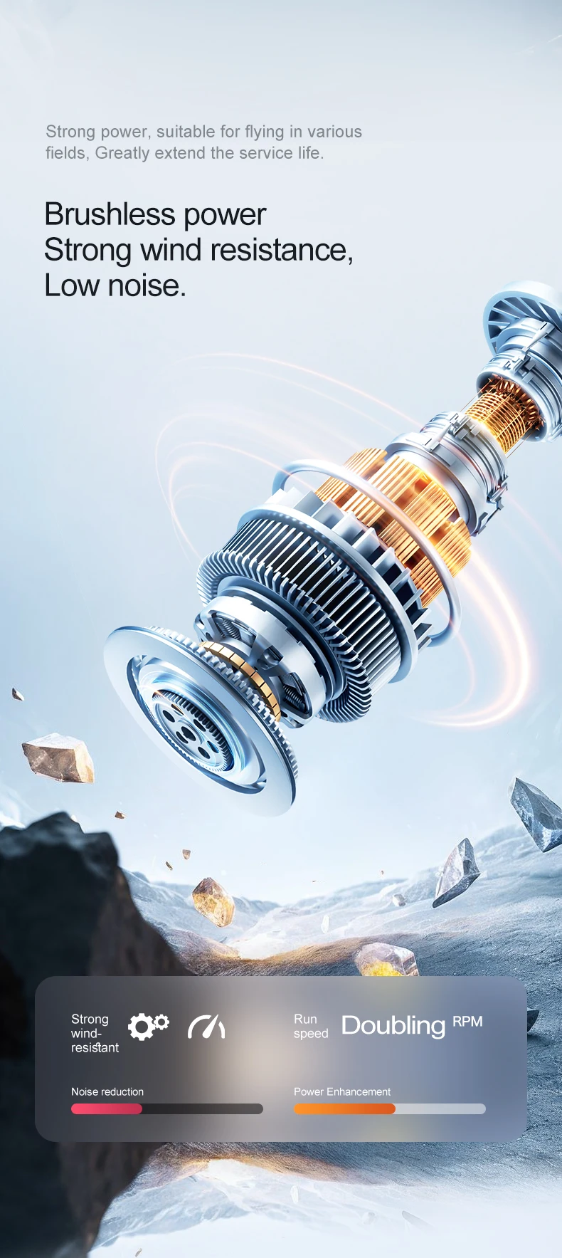 • Moteur sans balais pour un vol plus fluide, stable et durable