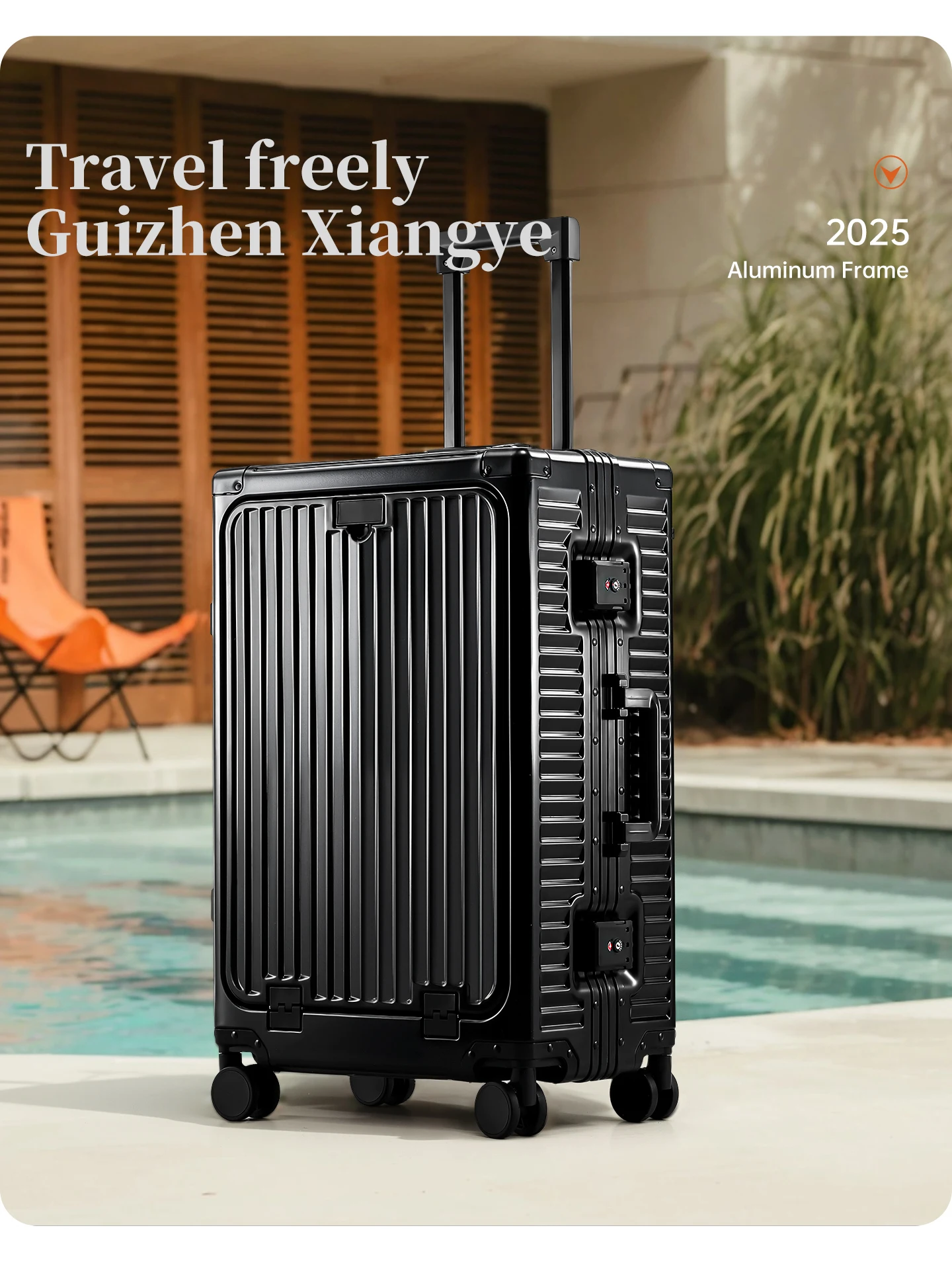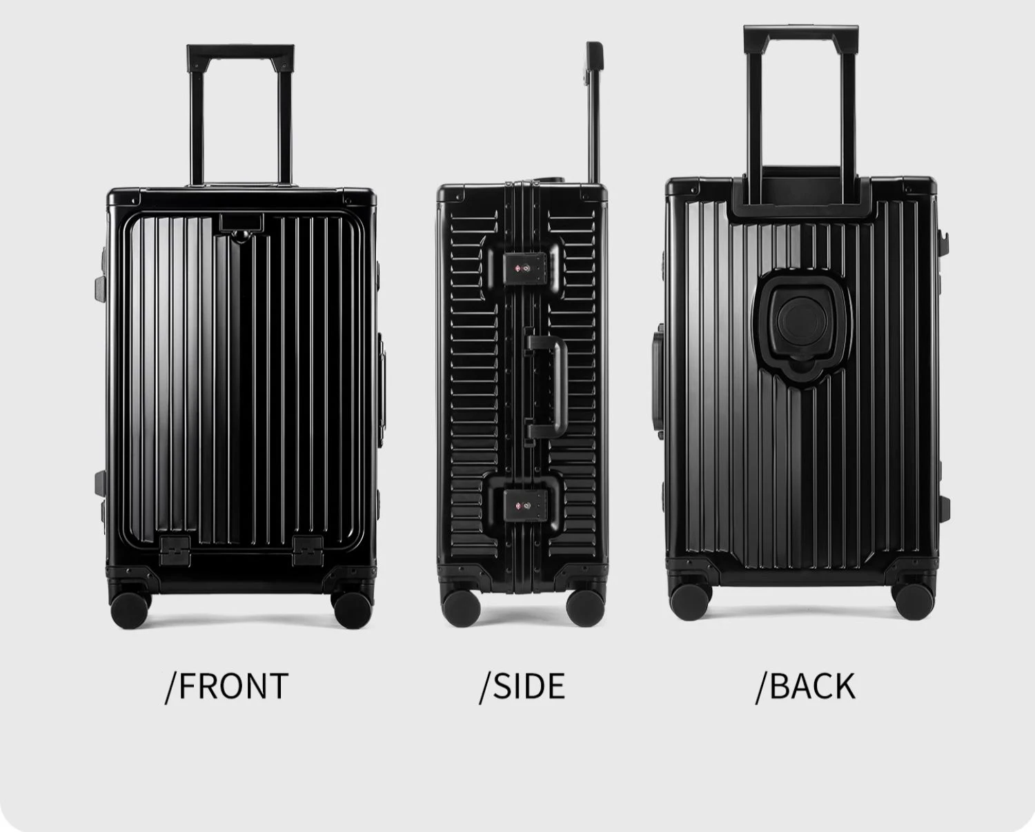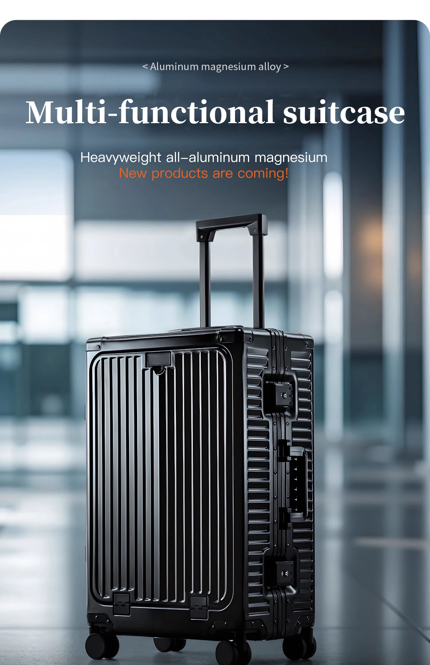 Valise rigide en alliage d’aluminium et de magnésium SUSHIMU – bagage à roulettes avec ouverture avant, 20 et 24 pouces