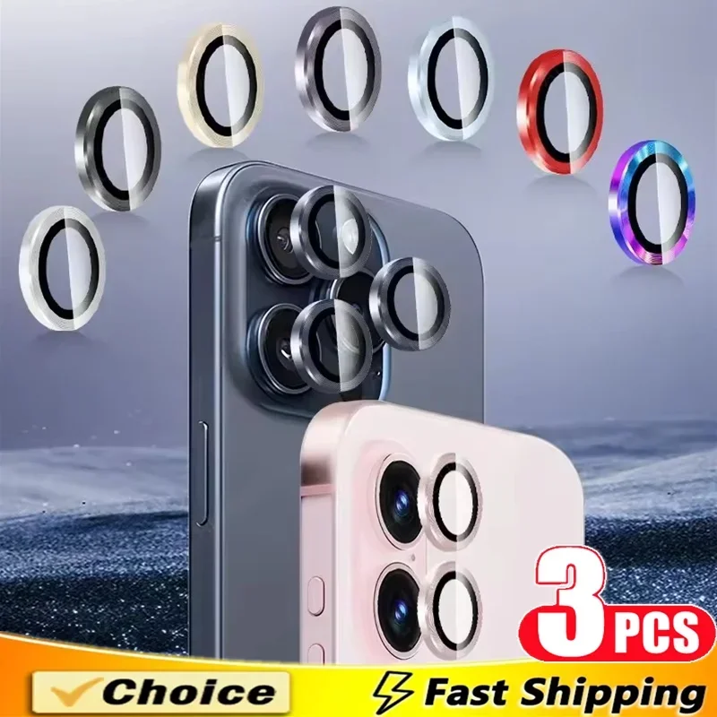Verre de protection d'objectif en métal, 3 pièces, pour iPhone 13 12 11 15 16 17Pro Max Mini, Film de protection d'objectif de caméra arrière pour iPhone 16 15 Plus