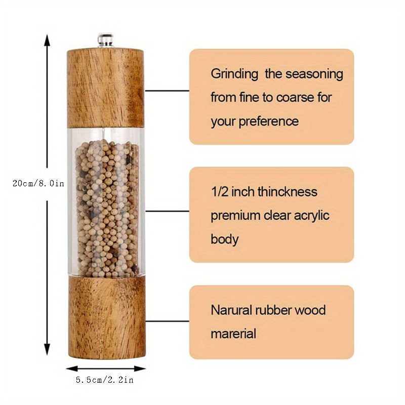 Moulin à poivre, moulin à sel de mer ménager, moulin à épices créatif, moulin à sel de mer manuel, broyeur à épices, shakers en bois avec noyau en céramique réglable, bouteille d'assaisonnement réutilisable, gadgets de cuisine, outils de cuisine