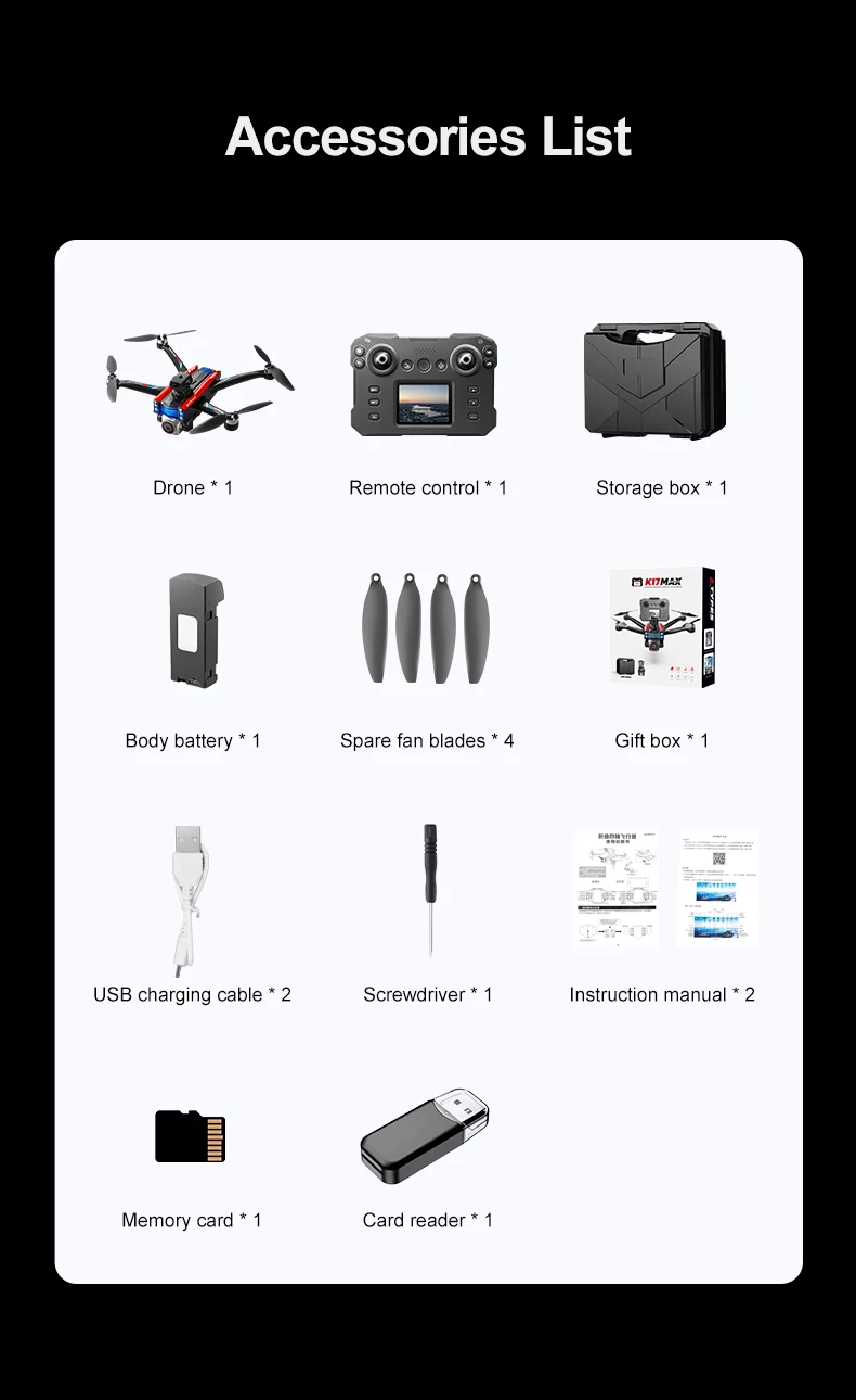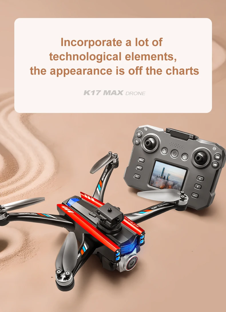 Drone K17 Max – Version Écran 4K HD, Caméra Sans Brosse, Évitement d’Obstacles, Photographie Aérienne, Quadrirotor Pliable RC Jouet