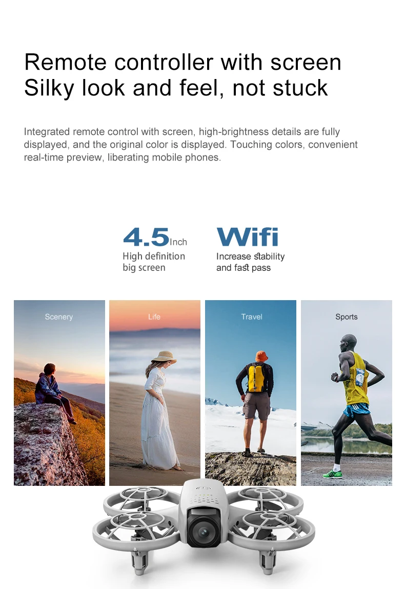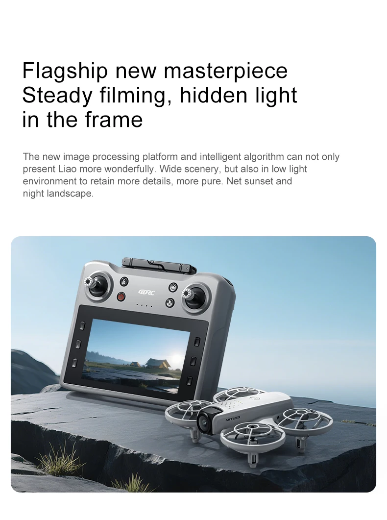 Drone pliable et prêt à voler, conçu pour la photographie aérienne avec double caméra HD 8K et contrôle via application ou télécommande avec écran. Idéal pour les débutants et les amateurs de drones.
