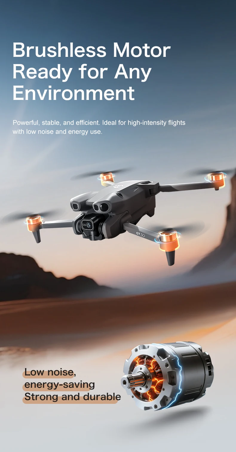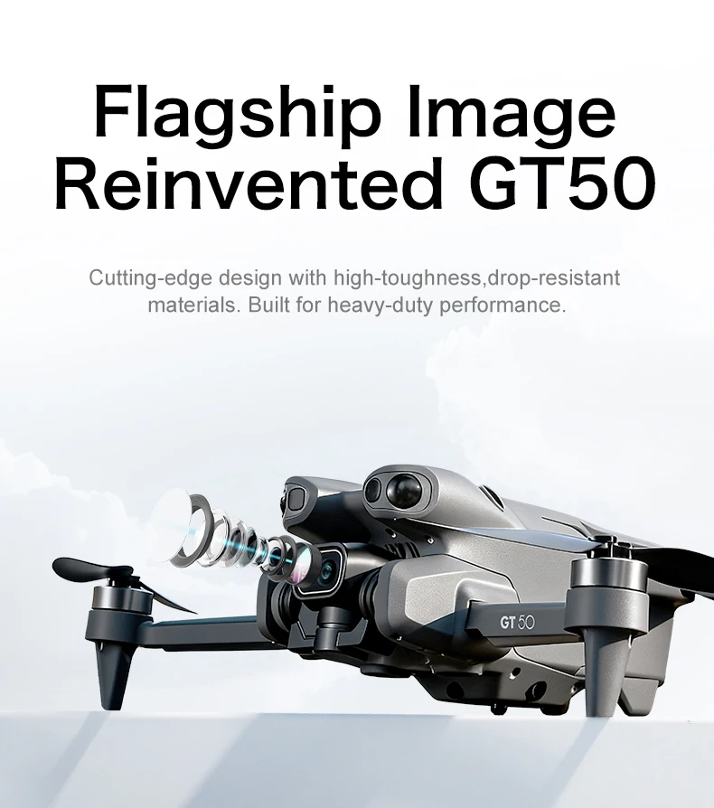Découvrez le GT50 Pro, un drone pliable équipé de double caméra 8K UHD, moteur sans balais et écran de contrôle pour une expérience de vol stable et immersive. Idéal pour les débutants comme pour les pilotes expérimentés, il offre des prises de vue aériennes précises et un contrôle facile grâce à son application et sa télécommande intégrée.