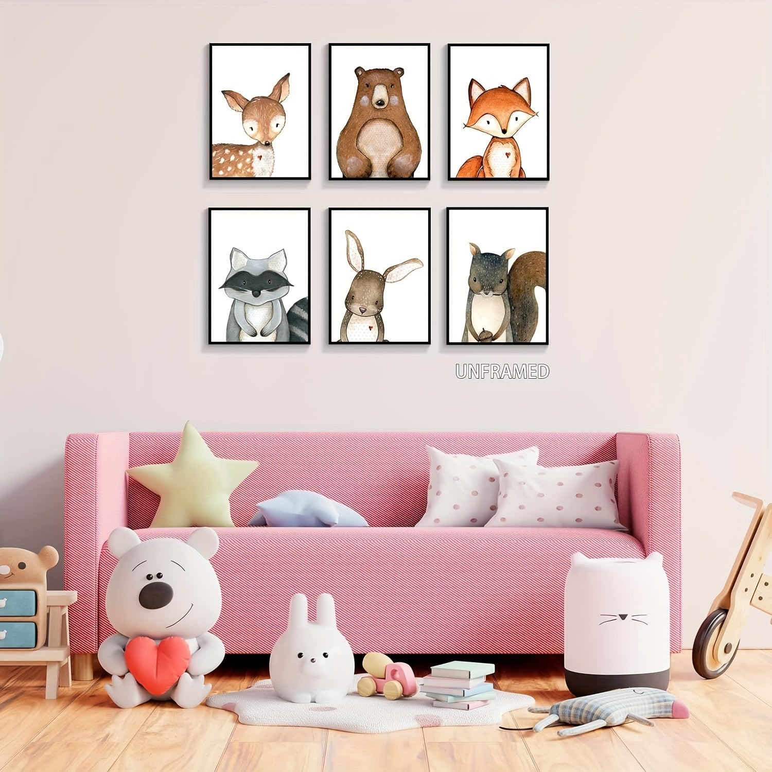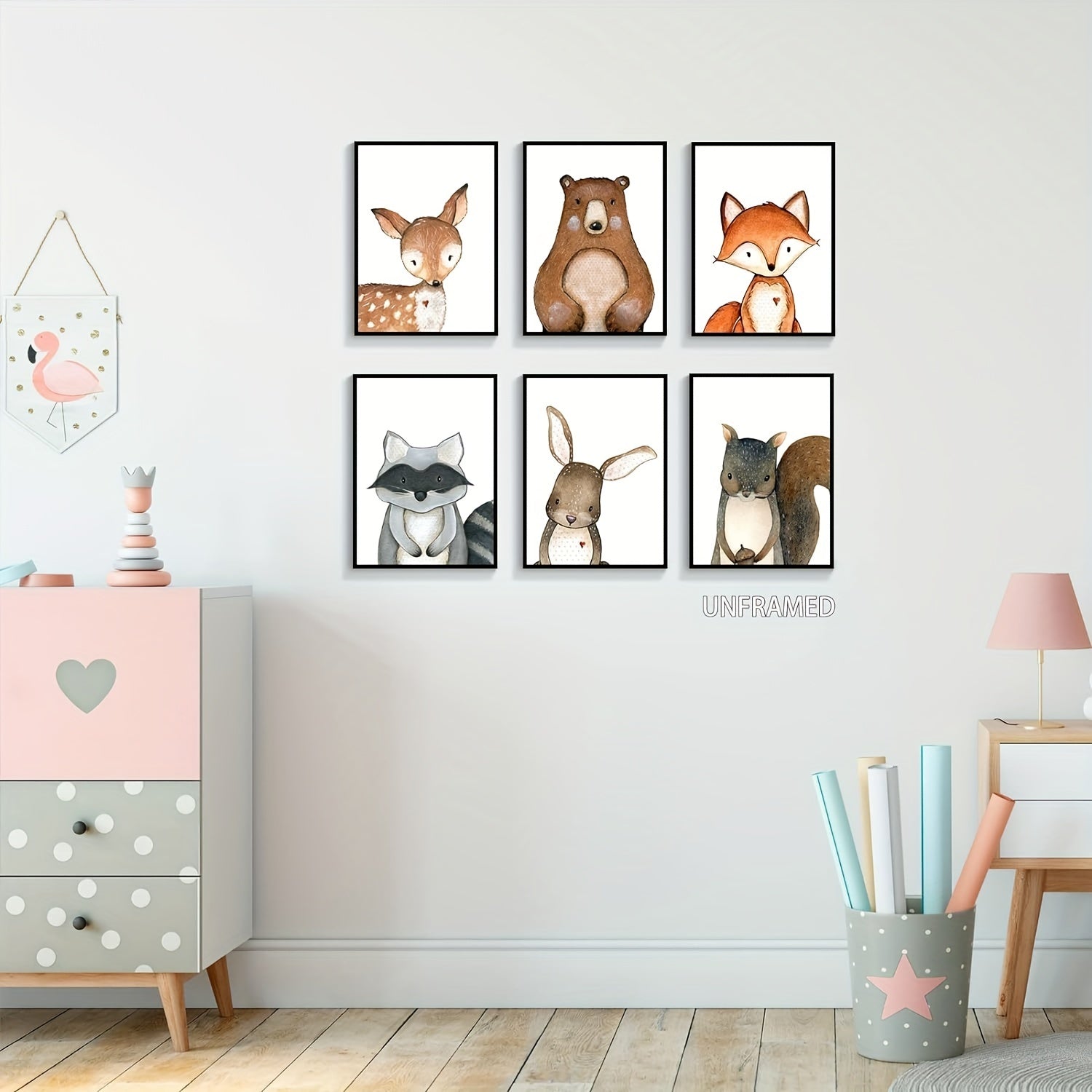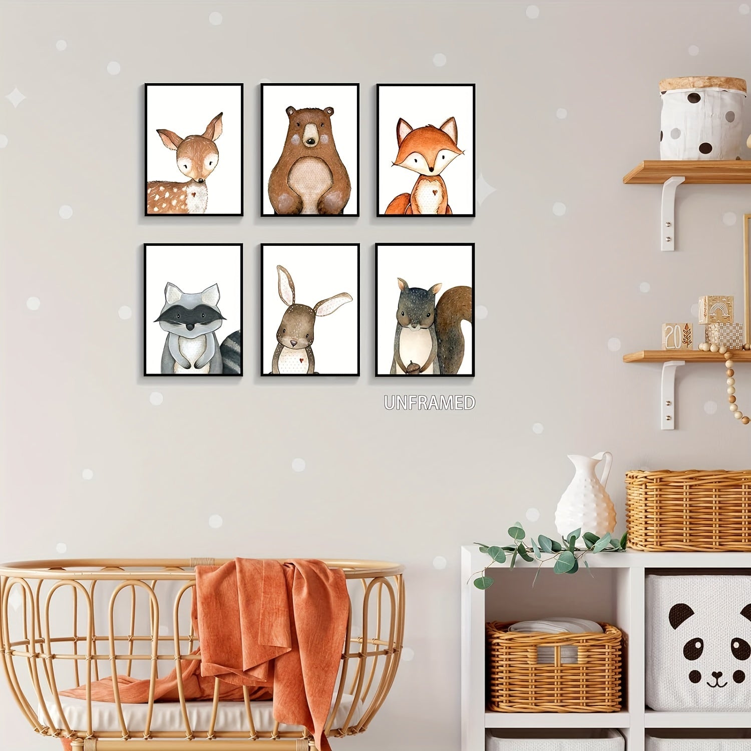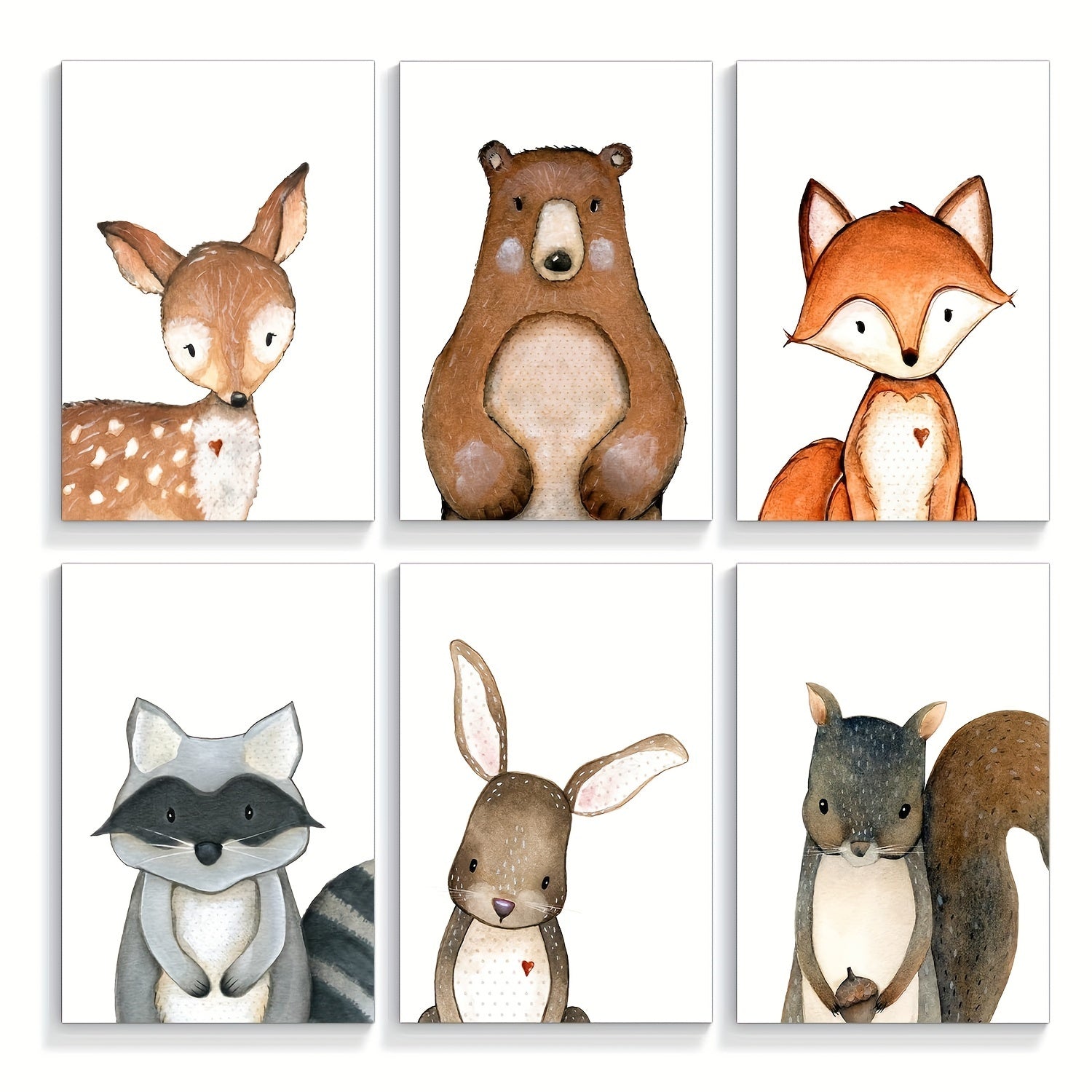 Lot de 6 toiles murales représentant des animaux de la forêt, des cerfs, des ours, des lapins, des safaris, des images de chambre, des fermes, des forêts, des renards, des écureuils, des ratons laveurs, sans cadre