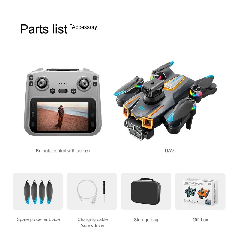 A19 Pro Drone 5G WIFI – Caméra professionnelle 8K, moteur sans balais, écran intégré