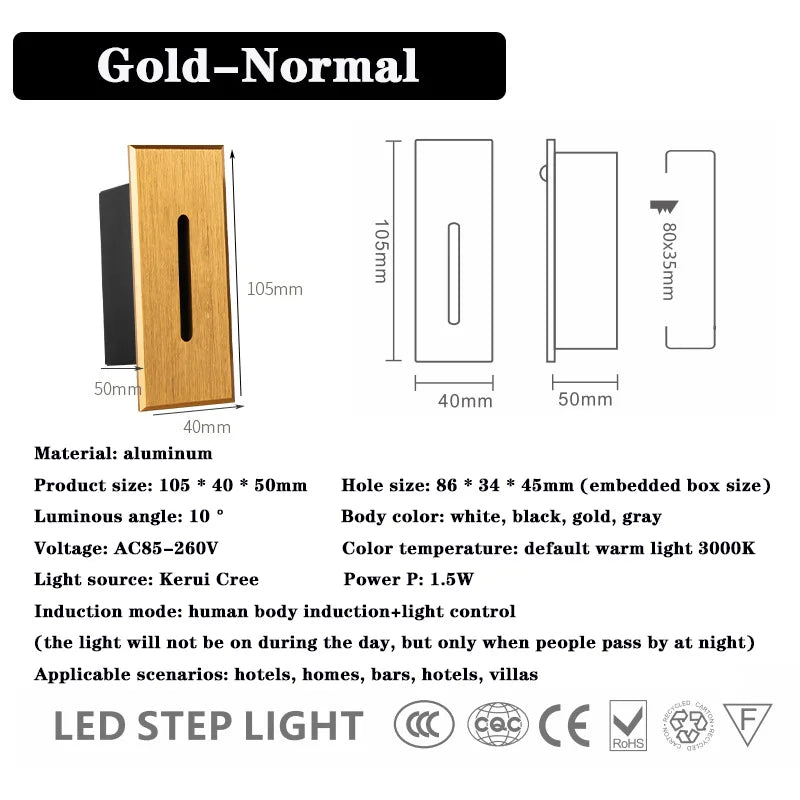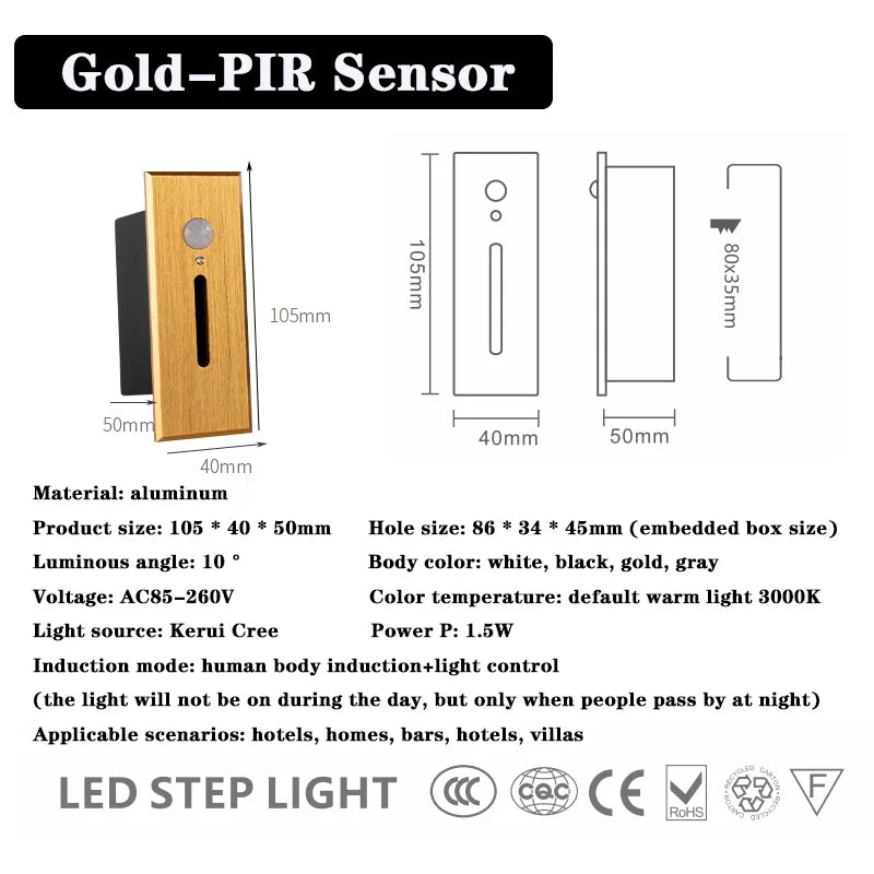 Caractéristiques: Recessed Led Wall Lamp PIR Lux Motion Sensor Stair Case Light AC100-26