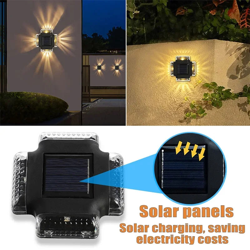 Applique Murale Solaire LED Imperméable, Projecteurs à Quatre Côtés, Éclairage de Jardin, Décoration de Clôture de Cour, 1-10 Pièces