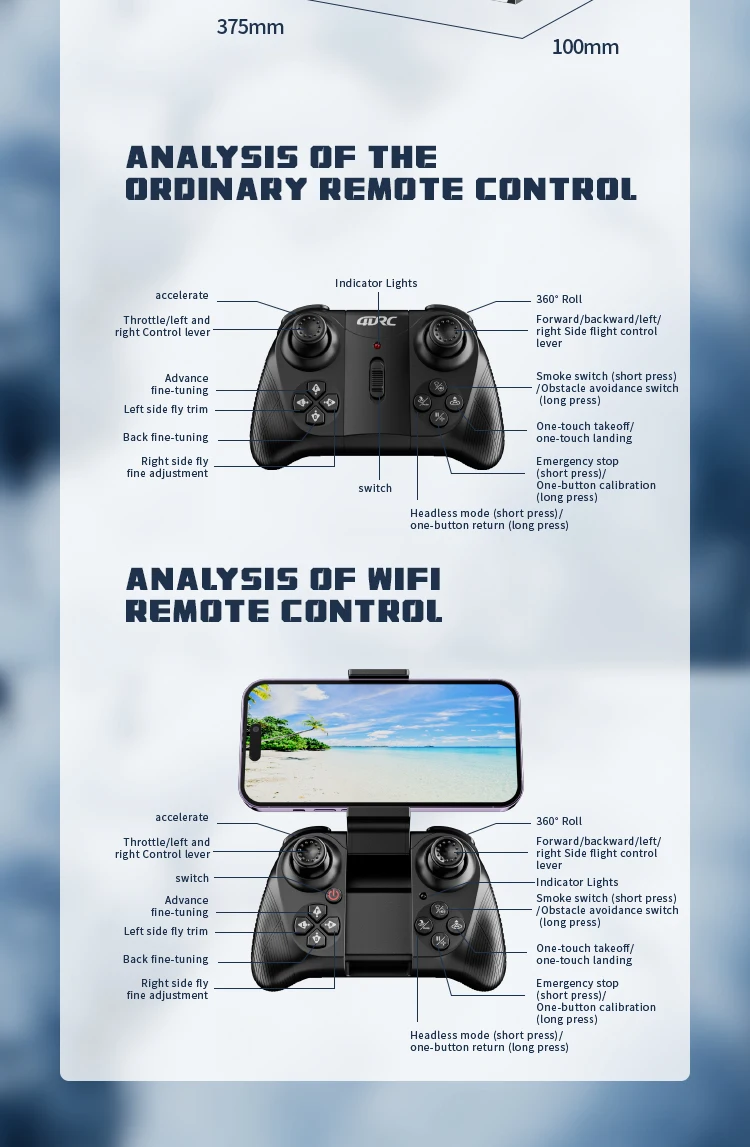 Drone quadrirotor RC léger et prêt à l’emploi, conçu pour la photographie aérienne et le pilotage en intérieur comme en extérieur. Compatible avec le contrôle via application, il convient aussi bien aux débutants qu’aux utilisateurs intermédiaires ou expérimentés.
