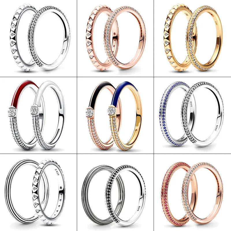 Bague en argent pour femme, bleu, noir, bague pavée, ensemble de bagues, bague originale S925, bijoux à bricoler soi-même