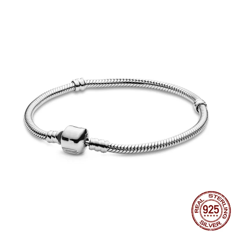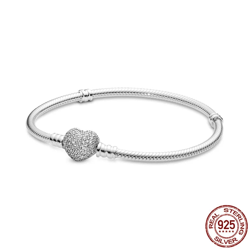 Bracelet en argent regardé 925 véritable pour femme, bracelets originaux, breloques en perles, cadeau de bijoux à bricoler soi-même, cœur, mode, 3mm