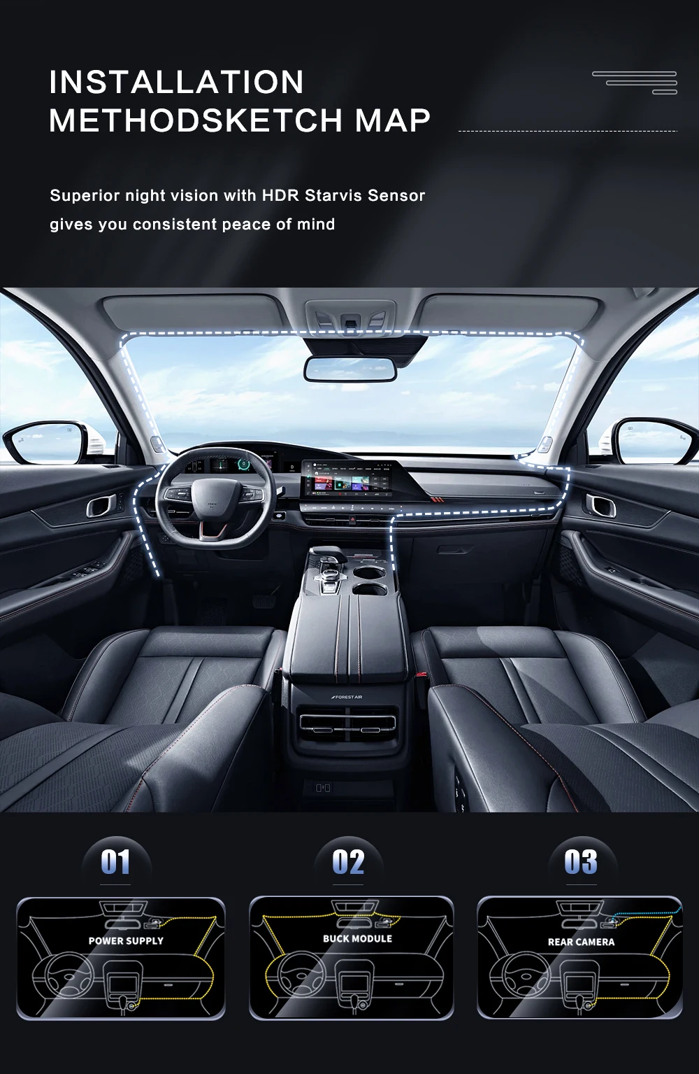 Dashcam Voiture 3 Caméras – HD, Vision Nocturne Simple, Écran 2", Enregistrement en Boucle