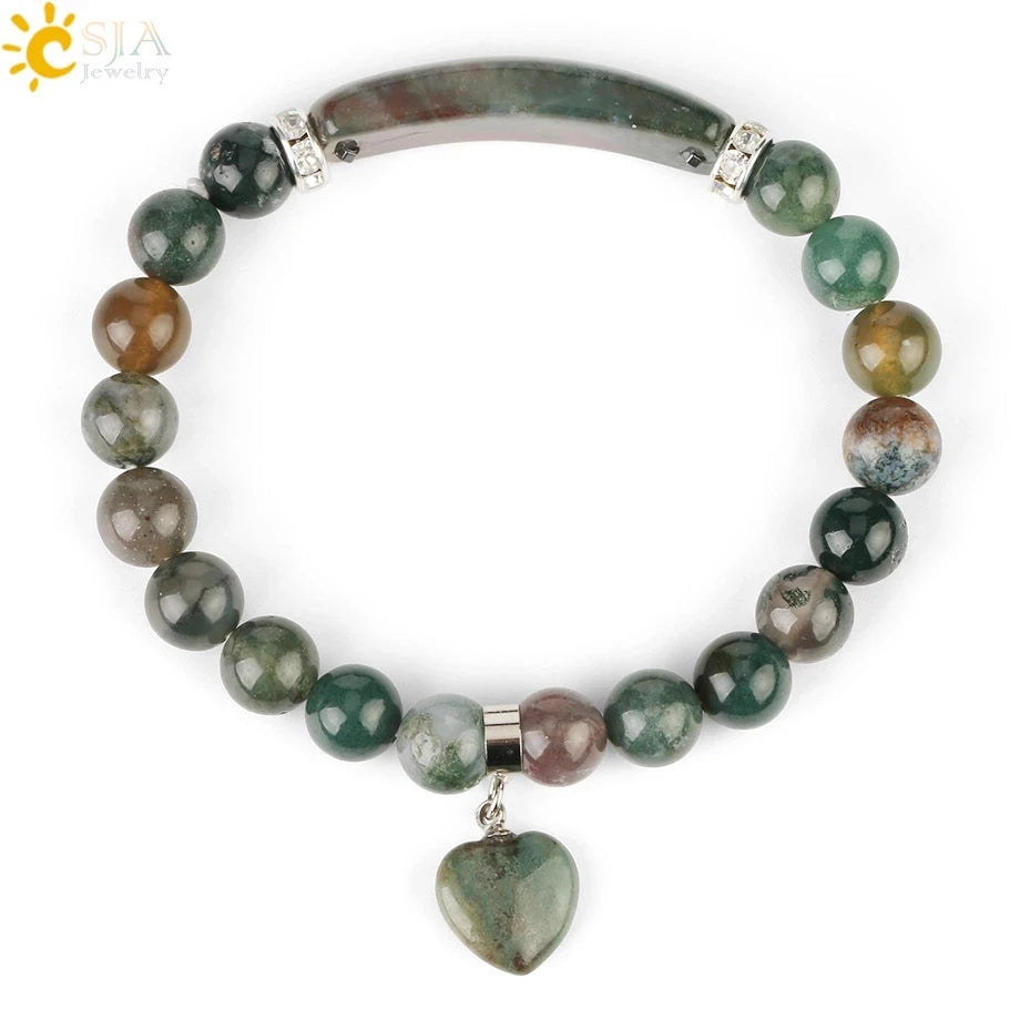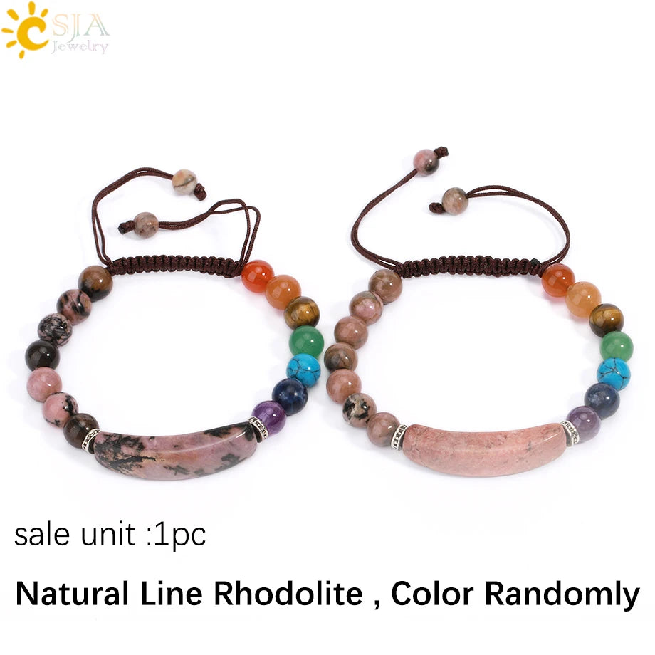 CSJA Bracelets Pierre Naturelle Cristal Amour Coeur Bracelet de perles pour femme en sodalite œil de tigre rose quartz rose amitié G909