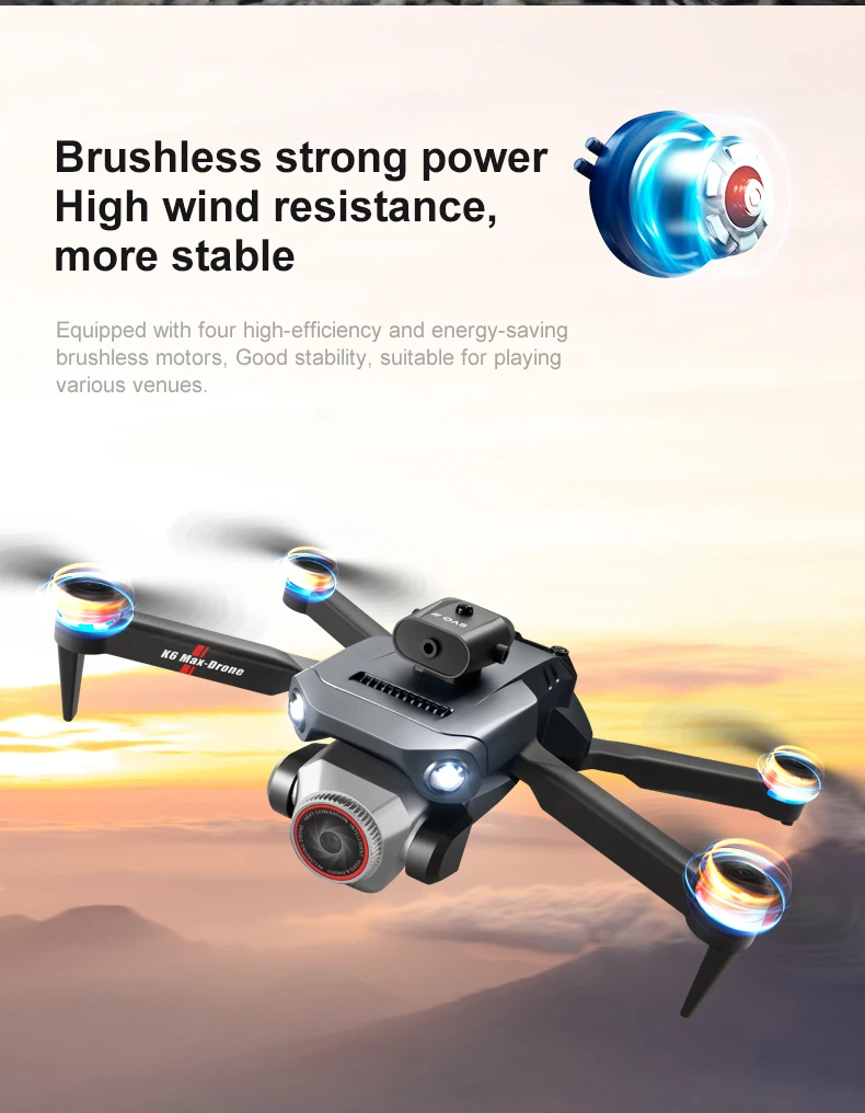 Drone sans balais K6 Max Hospreen, version solitaire, caméra 4K HD, moteur d’évitement d’obstacles, quadricoptère pliable, jouet RC. Compatible FPV, contrôle par application et télécommande avec écran. Adapté aux débutants comme aux pilotes expérimentés pour un usage intérieur et extérieur.