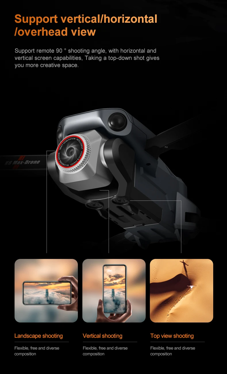 Caméra 4K HD pour prise de vue horizontale, verticale et aérienne