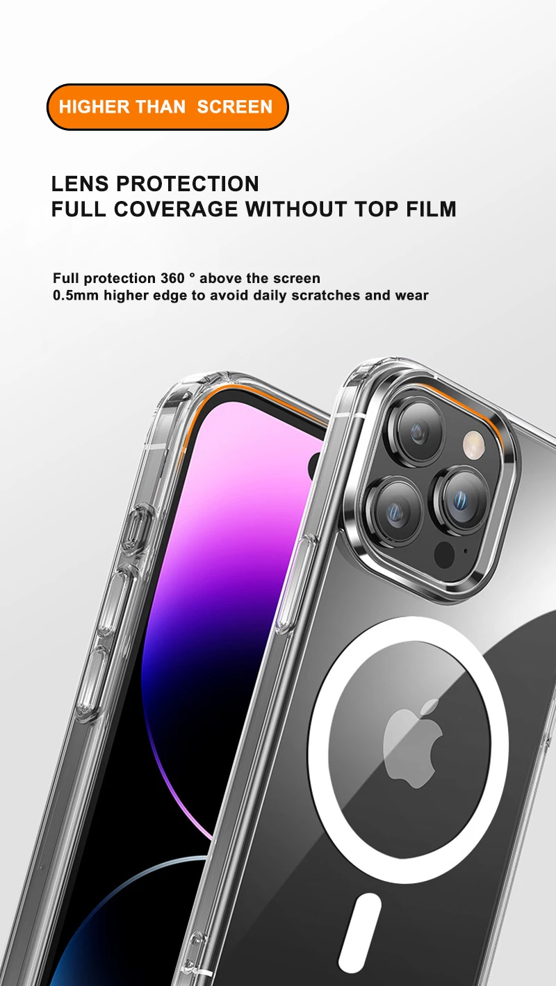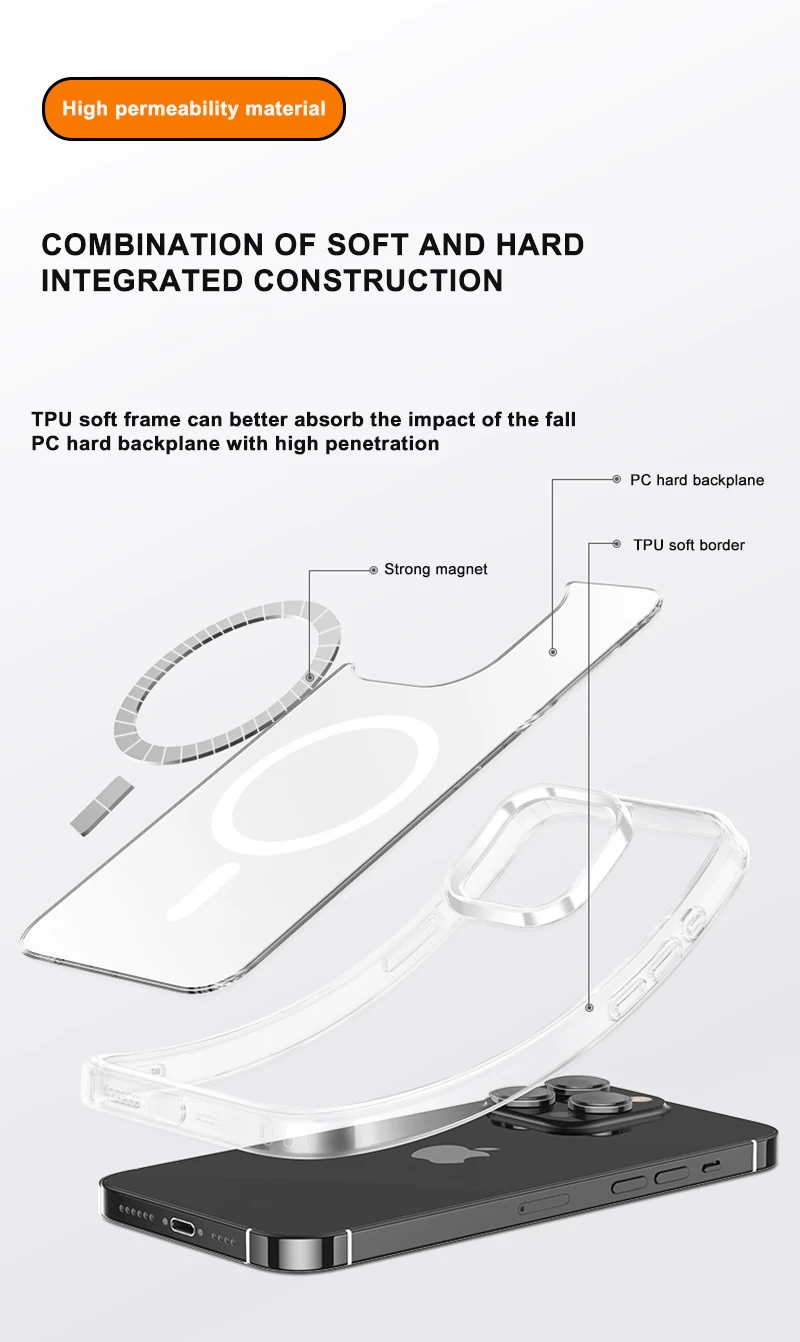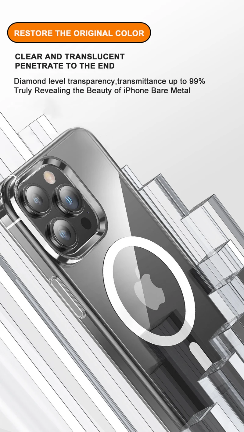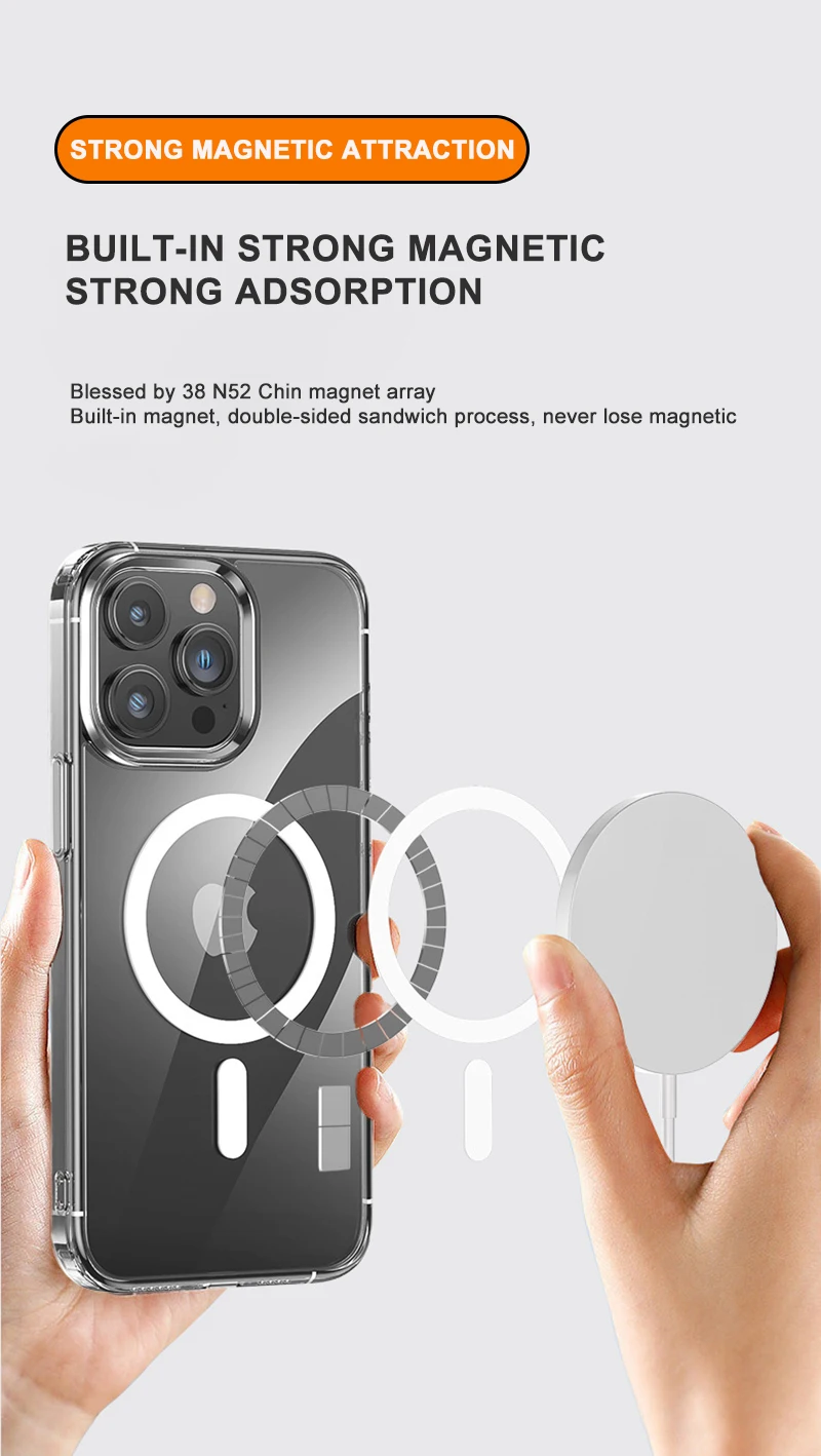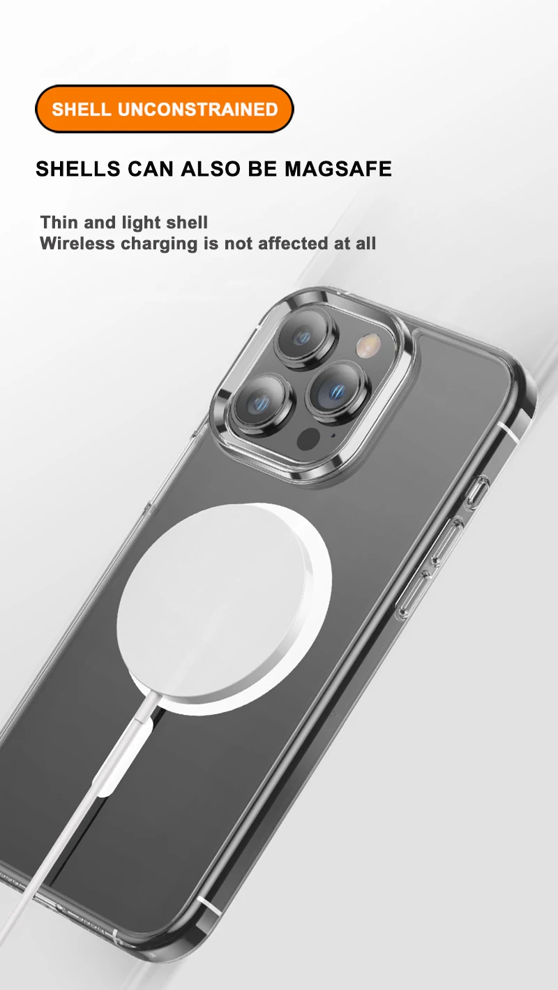 Étui magnétique transparent compatible MagSafe pour iPhone – Coque de protection et charge sans fil