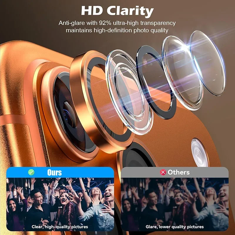 Film de protection pour objectif de caméra arrière, combinant un cadre en alliage d’aluminium et un verre trempé haute dureté pour protéger efficacement les lentilles contre rayures et traces.