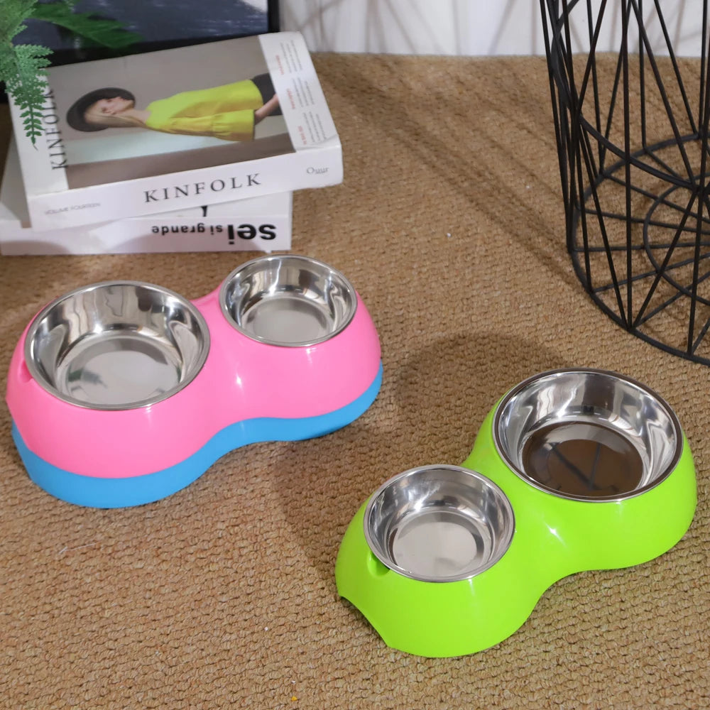 Bol Double pour chat, en acier inoxydable, pour l'alimentation des animaux domestiques, des chiens et des chats