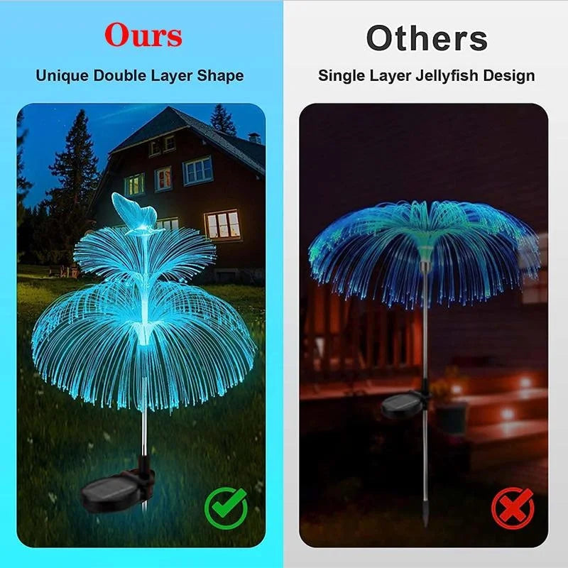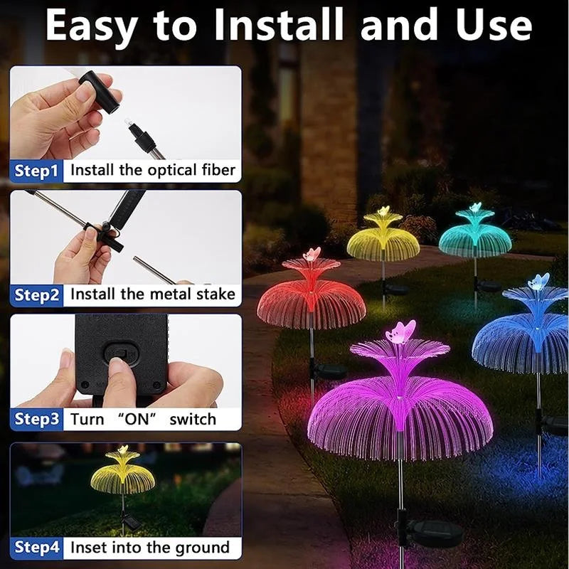 【Forme unique de méduse papillon et durable】: Les lampes à fleurs solaires d'extérieur sont fabriquées en fibre optique plastique. L'étoile et la lune ajoutent de l'éclat à la lampe à méduse. Il est résistant à la corrosion et a une forte transmission de la lumière, la couleur est très brillante et brillante. Le design unique de la lampe de méduse extérieure rend votre jardin magnifique et unique. Il est très approprié aux jardins, cours, arbres, fleurs, parterres de fleurs, clôtures, pelouses, voies, terrains de camping, fontaines.