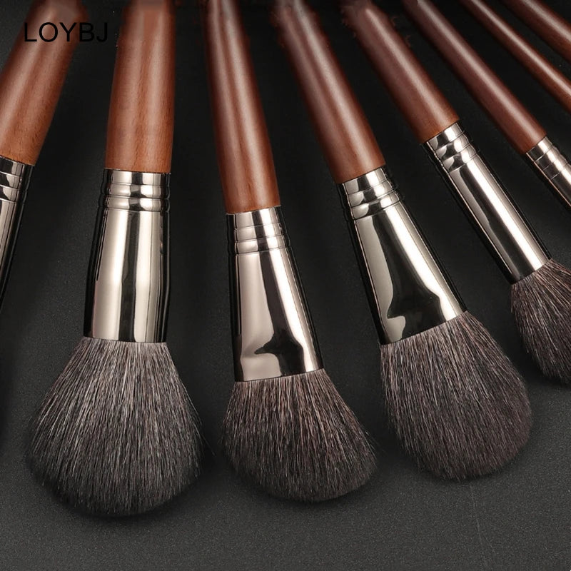 Ensemble de pinceaux de maquillage en poils de chèvre naturels LOYBJ, fond de teint en poudre, fard à joues, pinceau cosmétique, eye-blogging, mélange de maquillage