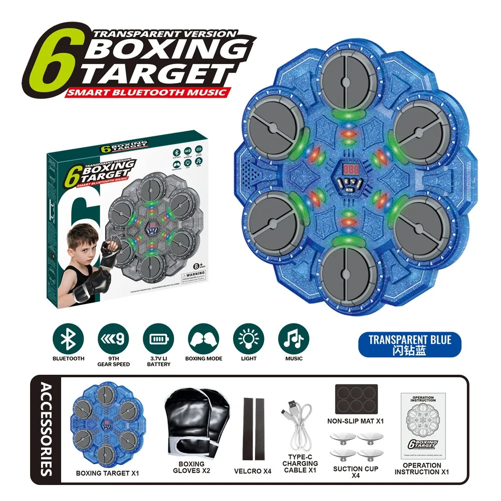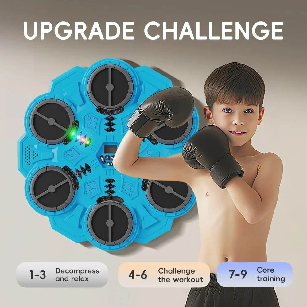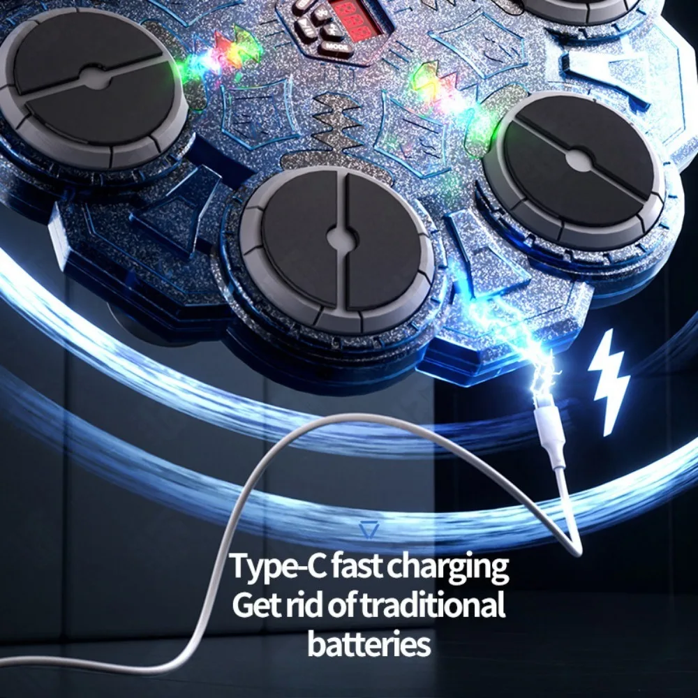 Équipement de boxe rythmique domestique offrant une expérience d’entraînement interactive pour adultes et enfants. Doté de 9 vitesses et de lumières LED, il favorise la coordination, la vitesse de réaction et le fitness à domicile, sans perçage nécessaire. Idéal pour appartements, dortoirs ou portes, il combine amusement et condition physique.