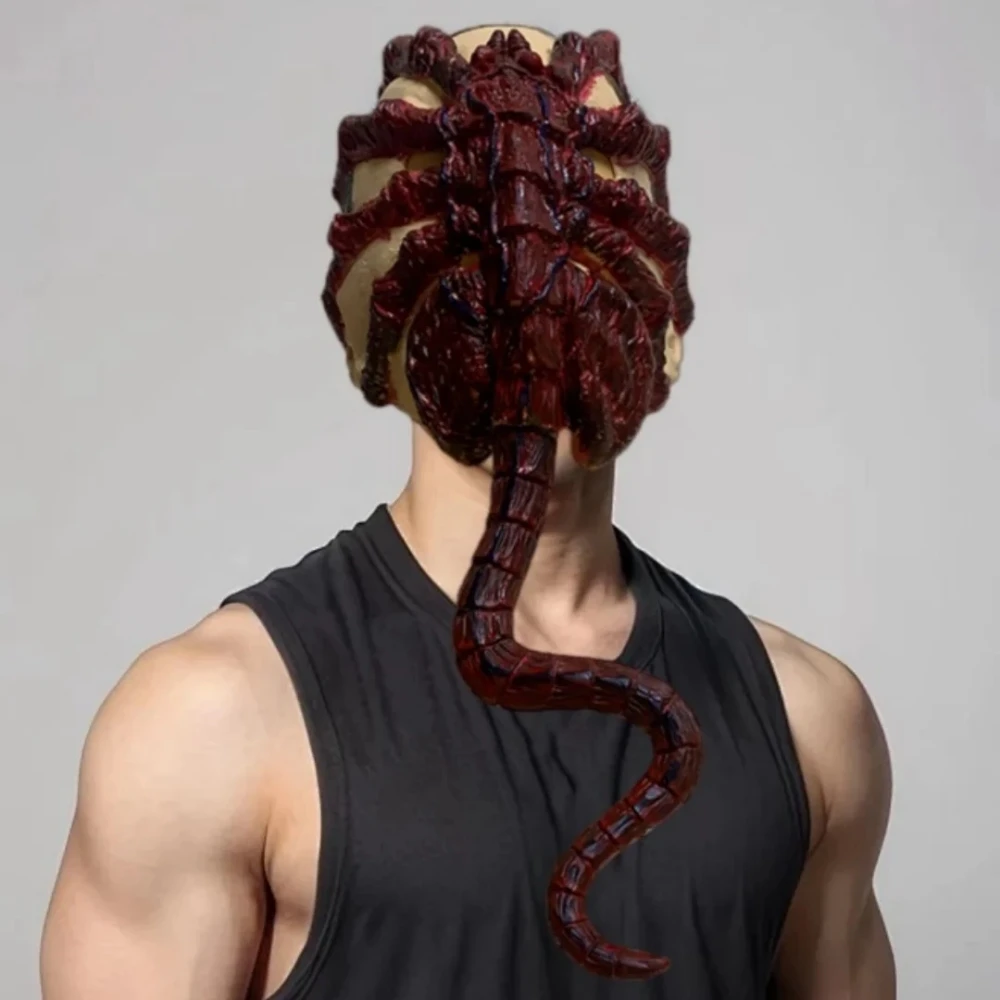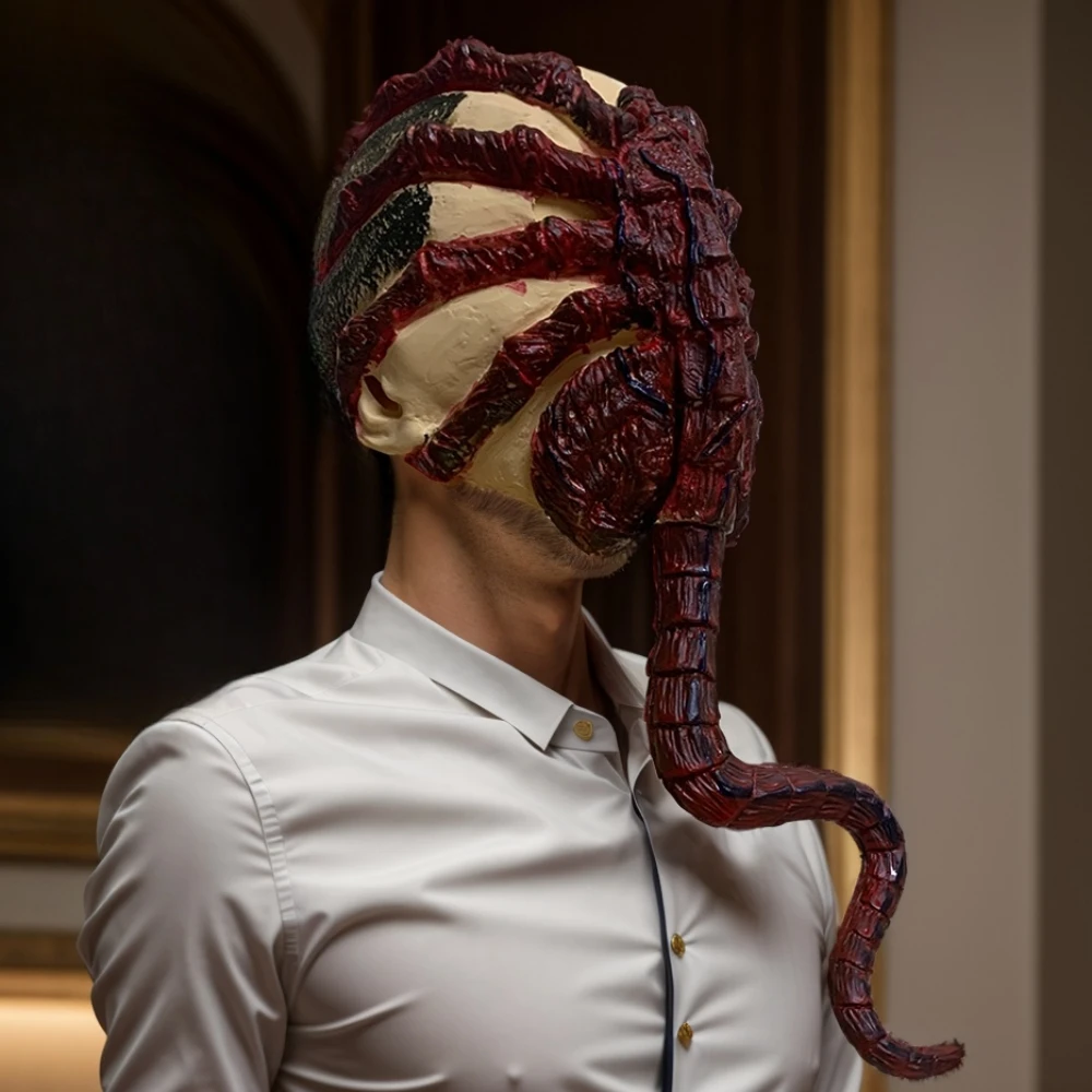 Masque de monstre classique de créature de la mer profonde avec une longue queue et une langue, un design sanglant pour les accessoires de performance en Latex d'Halloween