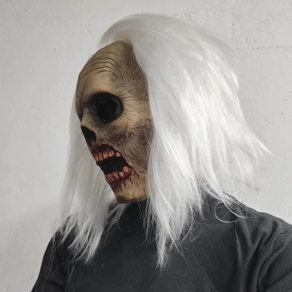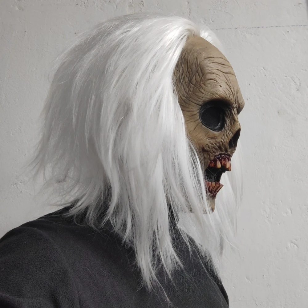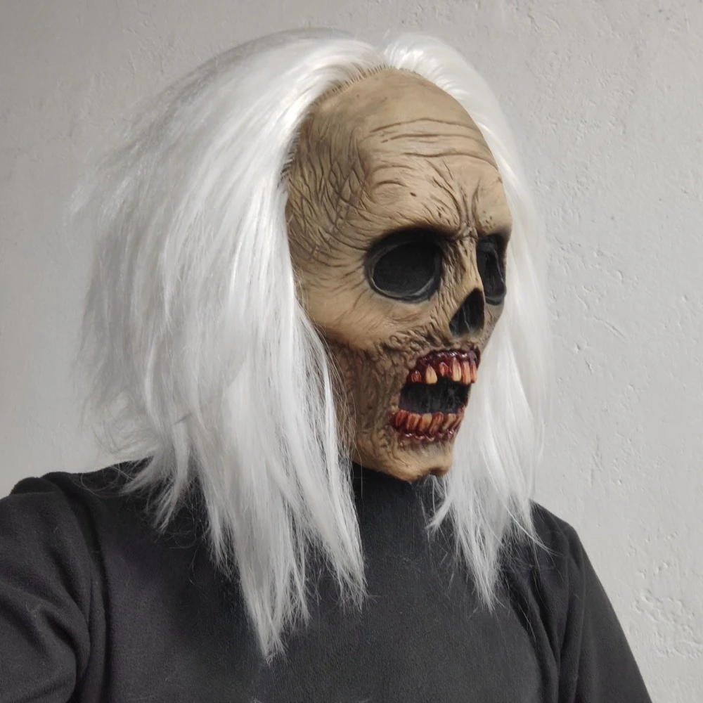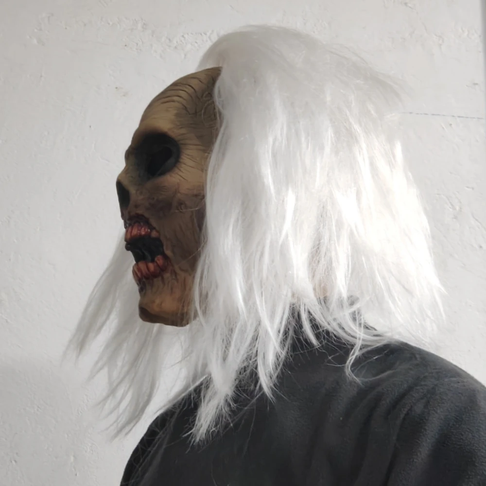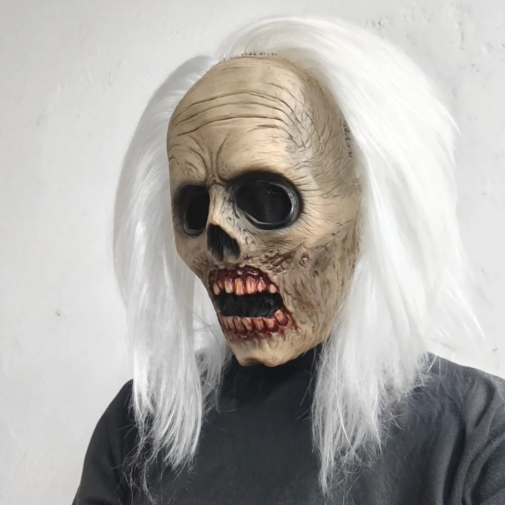Masque de tête de Zombie effrayant, masque de Vampire pour adultes, cheveux blancs, Costume effrayant, accessoires de décoration fantôme d'horreur d'halloween en Latex