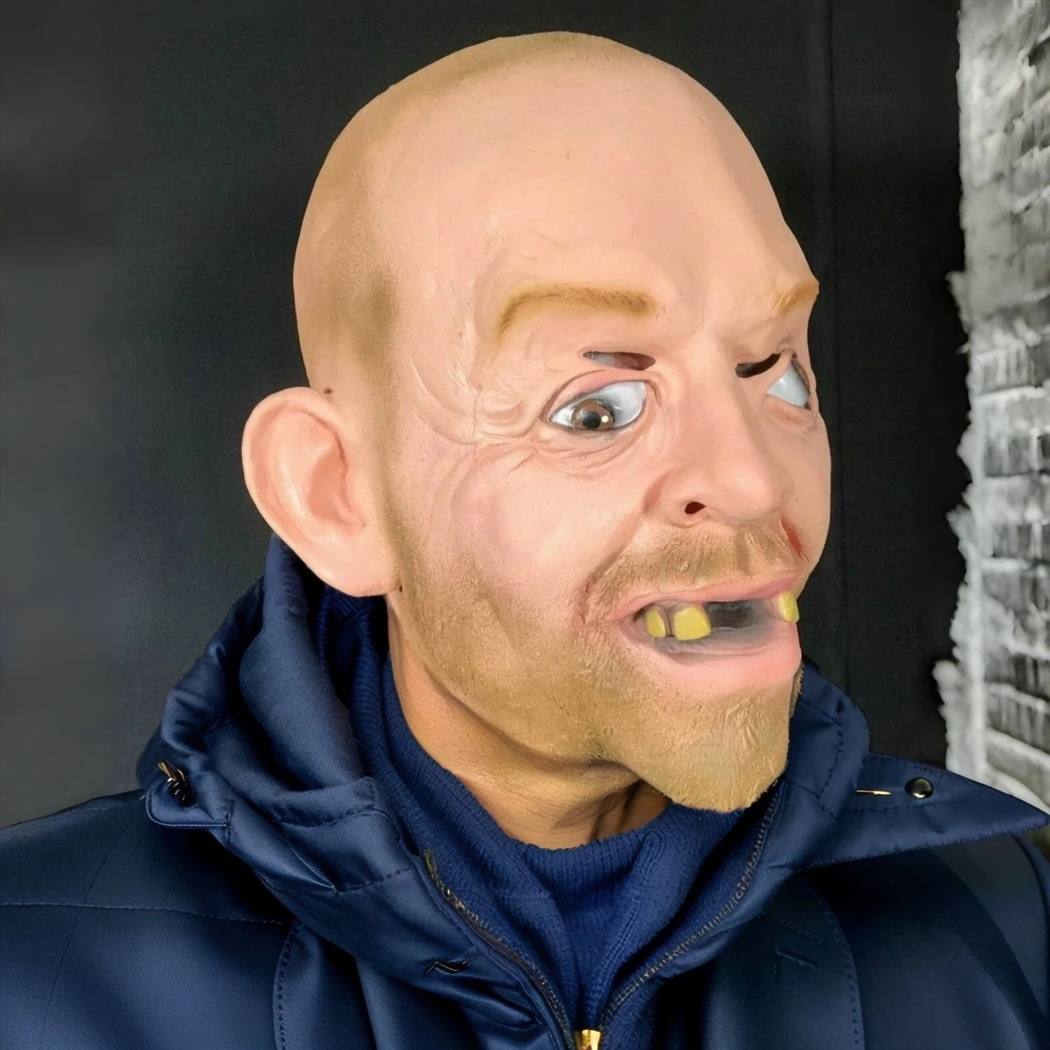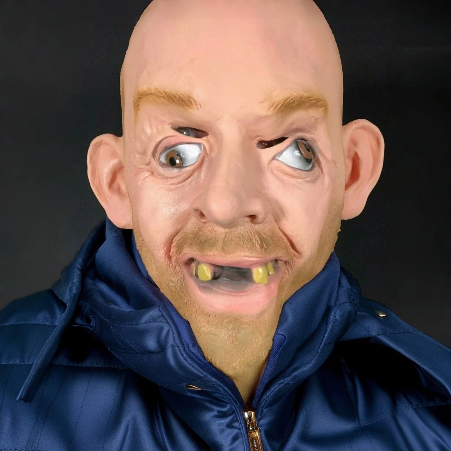 Adult Size Balloon King Bald Man Mask - John Tiger Hillbilly Inbred Costume with Crazy Eyes Latex Mask for Halloween Party
