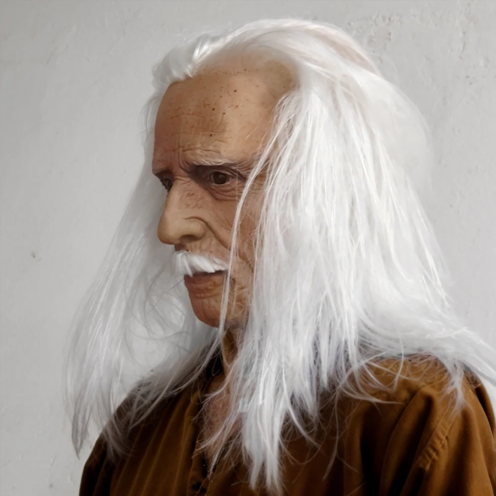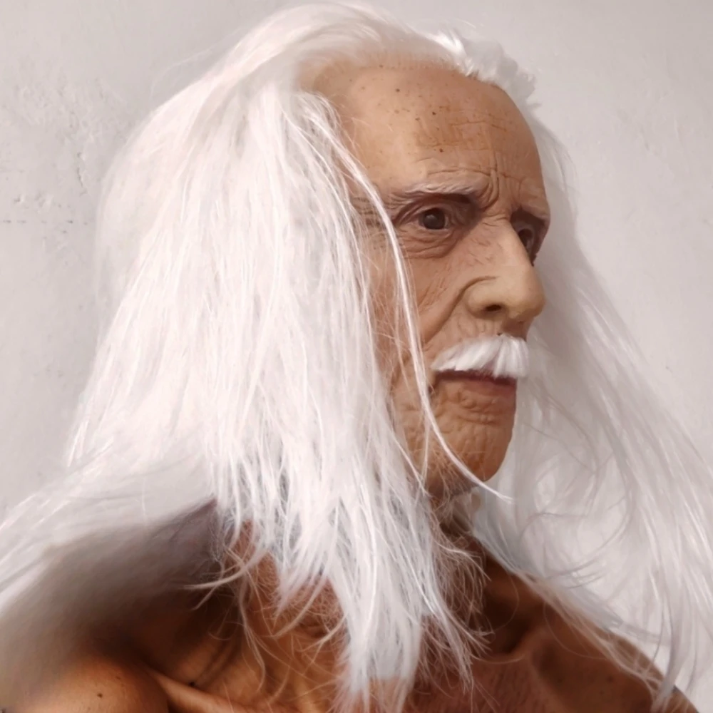 Masque réaliste en Latex pour vieille femme, avec bouche mobile, en caoutchouc souple, pour grand-père, avec cheveux blancs, accessoire de Costume d'halloween