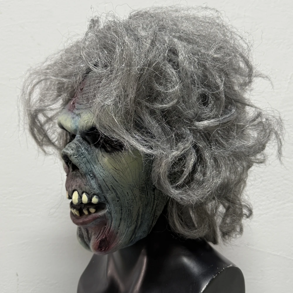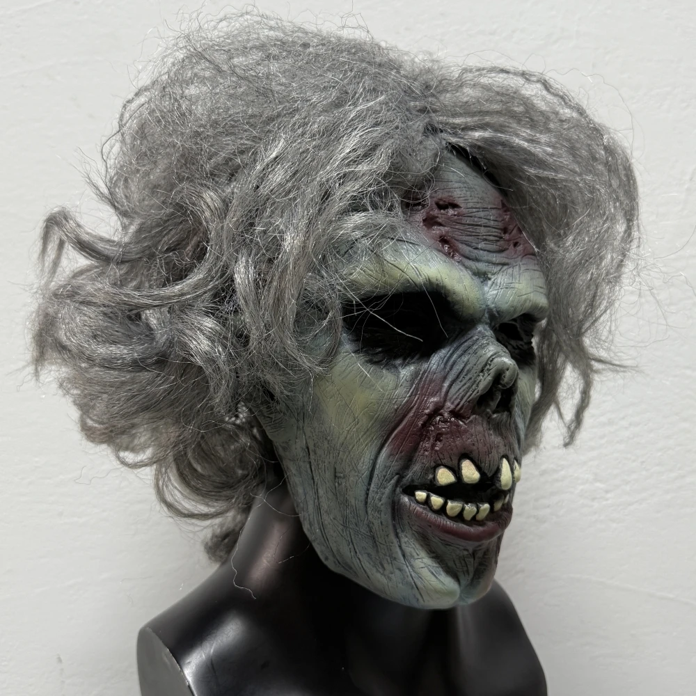 Masque Zombie Dead Man en caoutchouc pour cheveux gris pour adultes, avec morsure de sang, cicatrice d'halloween, accessoire de Costume détaillé pour mauvaises dents